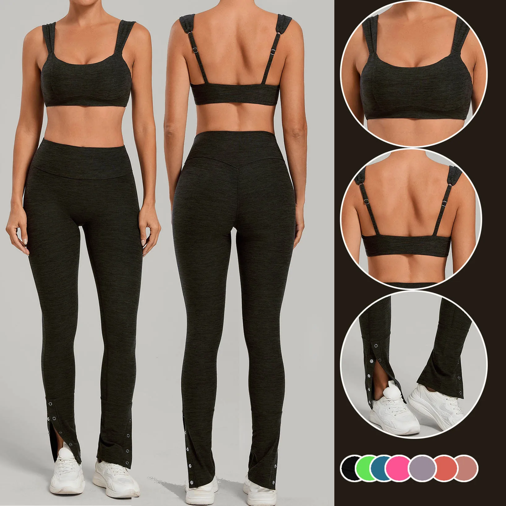 Hot Selling Women's Square Collar Flare Pants Yoga Set Outdoor Fitn...