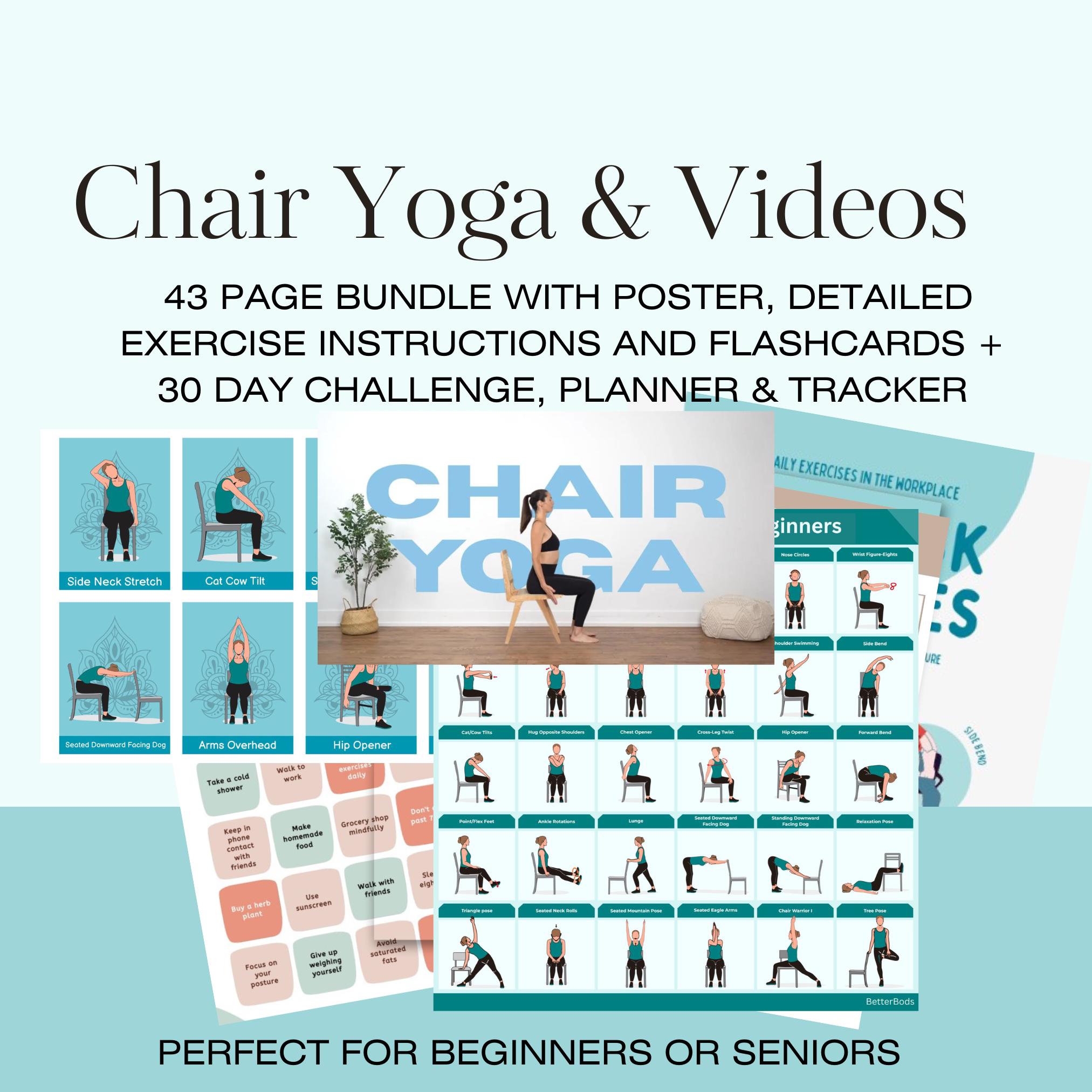 "Chair Yoga for Beginners & Seniors Wellness Bundle with Videos. 30 Gentle Poses to Improve...