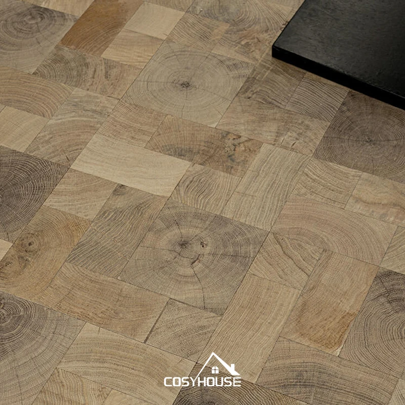 Smoked End Grain Oak Wood Flooring Dark Tone Handcrafted Block Parq...