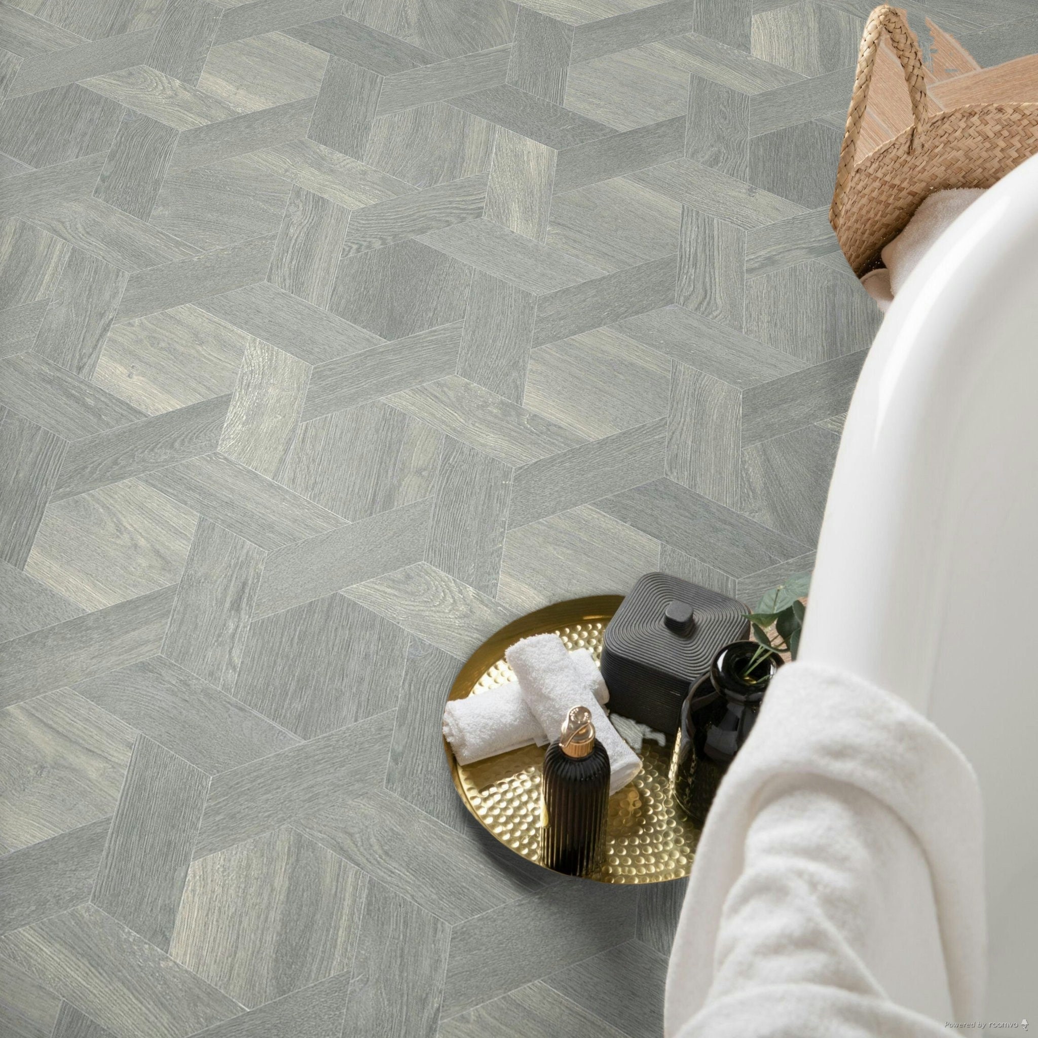 Grey Parquet Sheet Vinyl Flooring Roll in Wood Effect Basketweave P...