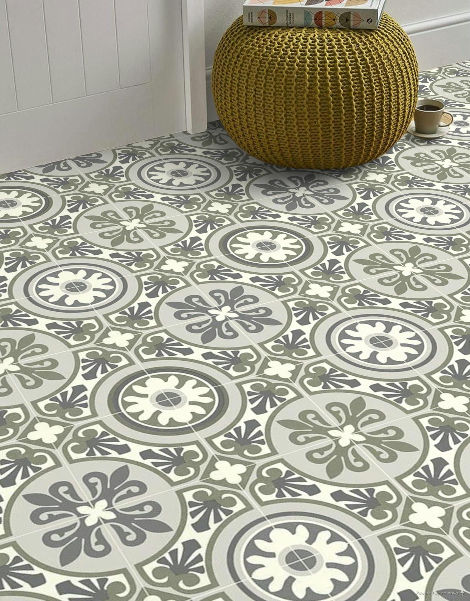 Green Sheet Vinyl Flooring Roll, Tile Effect Kitchen Lino, Moroccan...