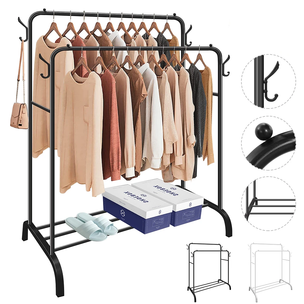 110*53*150cm Flooring Clothes Rack Metal Coat Rack with Double Rail Clothes Hanger Wardrobe Home Coa...