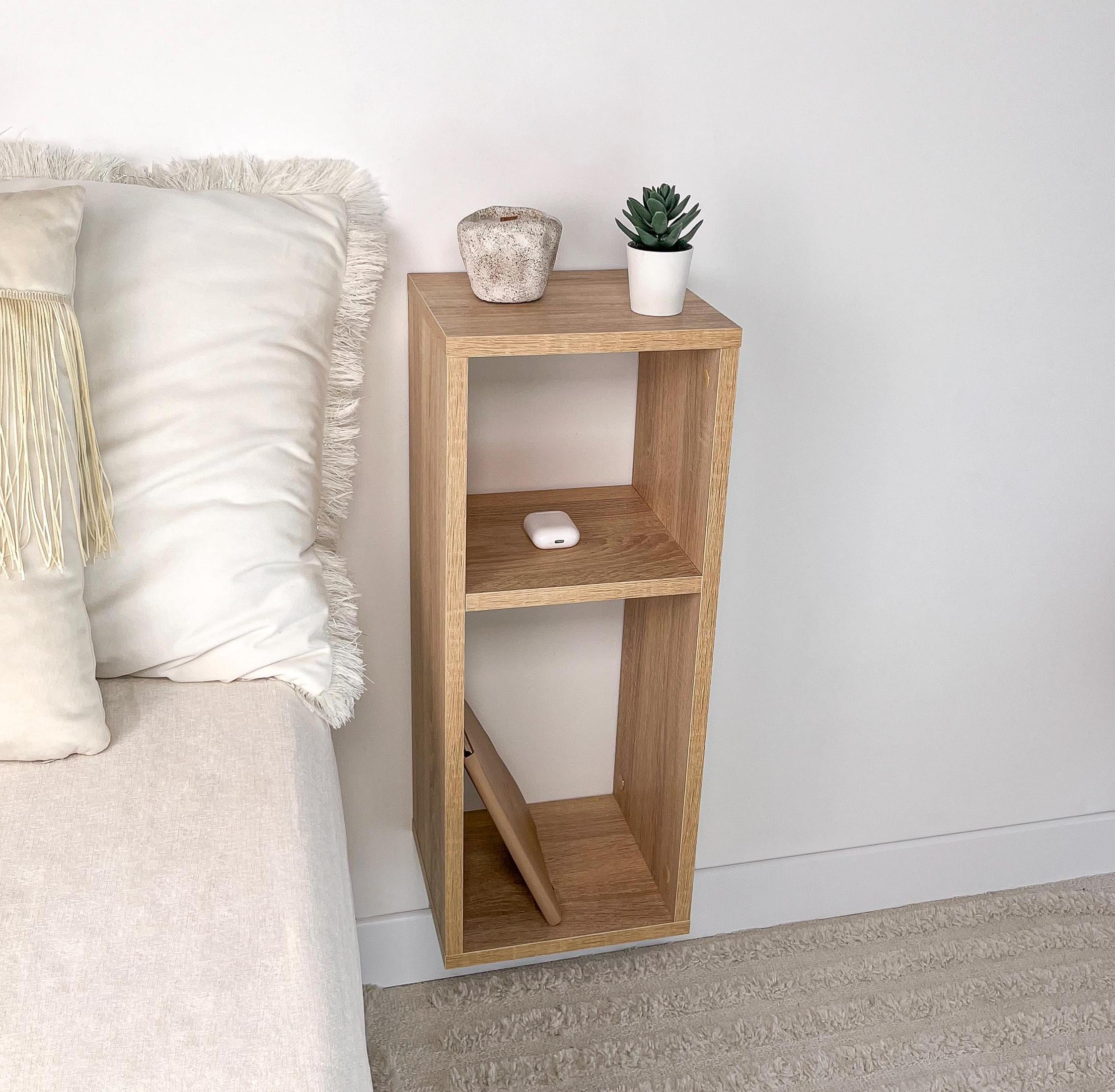 Maximize your bedroom space with this sleek, floating shelf bedside table, crafted from beautiful oa...