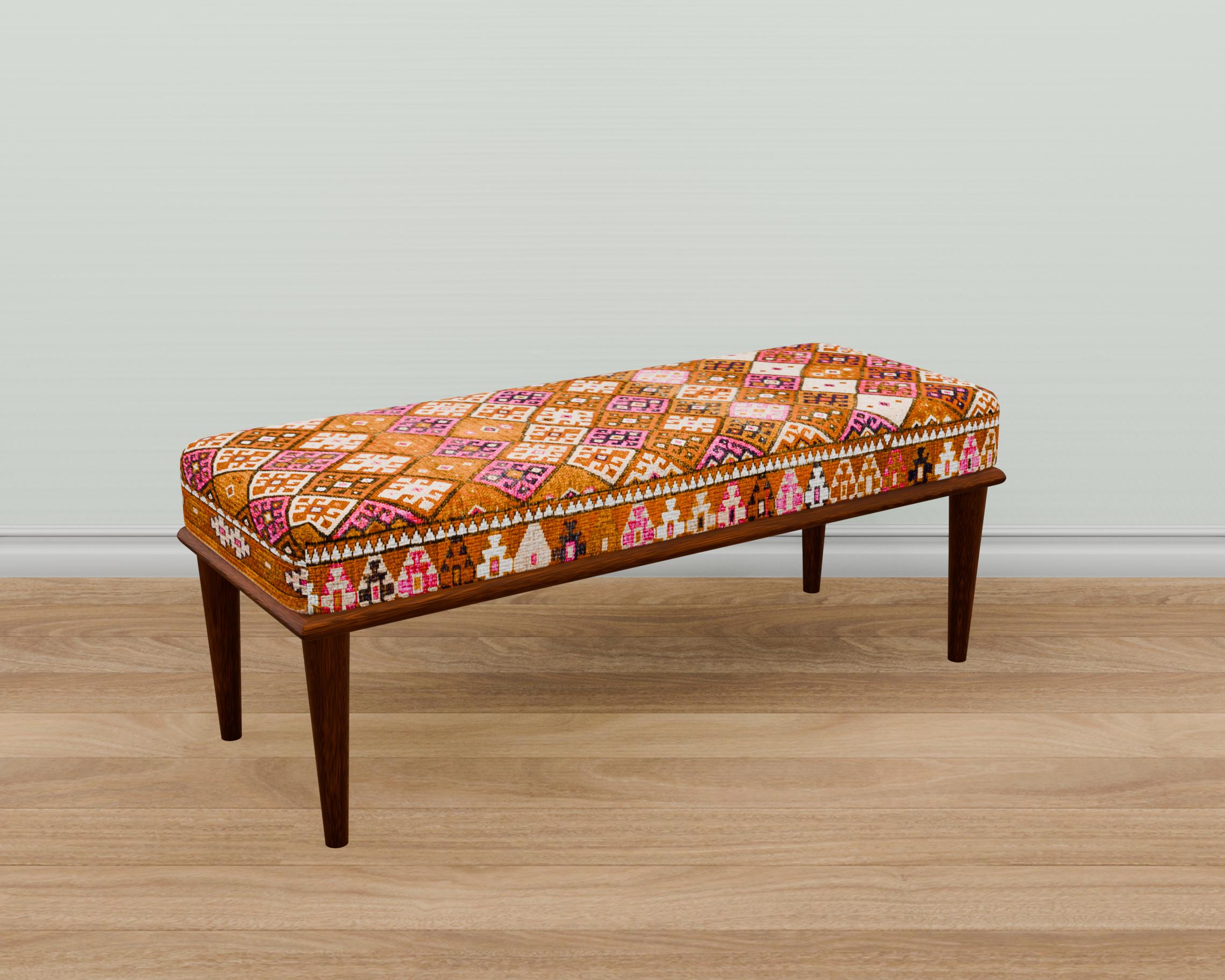 "Retro bench, Bench with cushion, Window bench, Staircase bench, Kilim design bench, Sitting be...