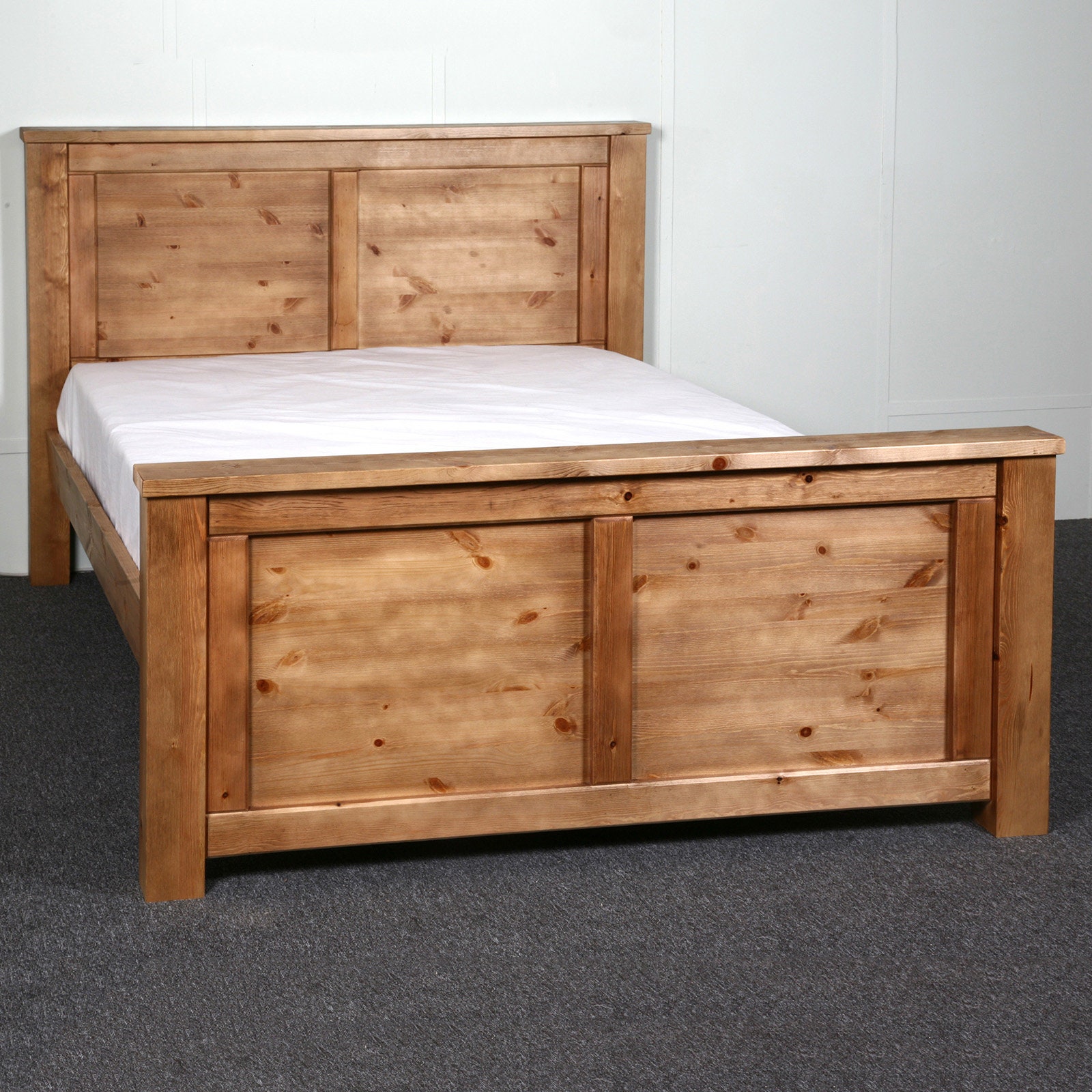 Solid Pine Chunky Panel Bed with High Foot End (3ft-6ft Available)