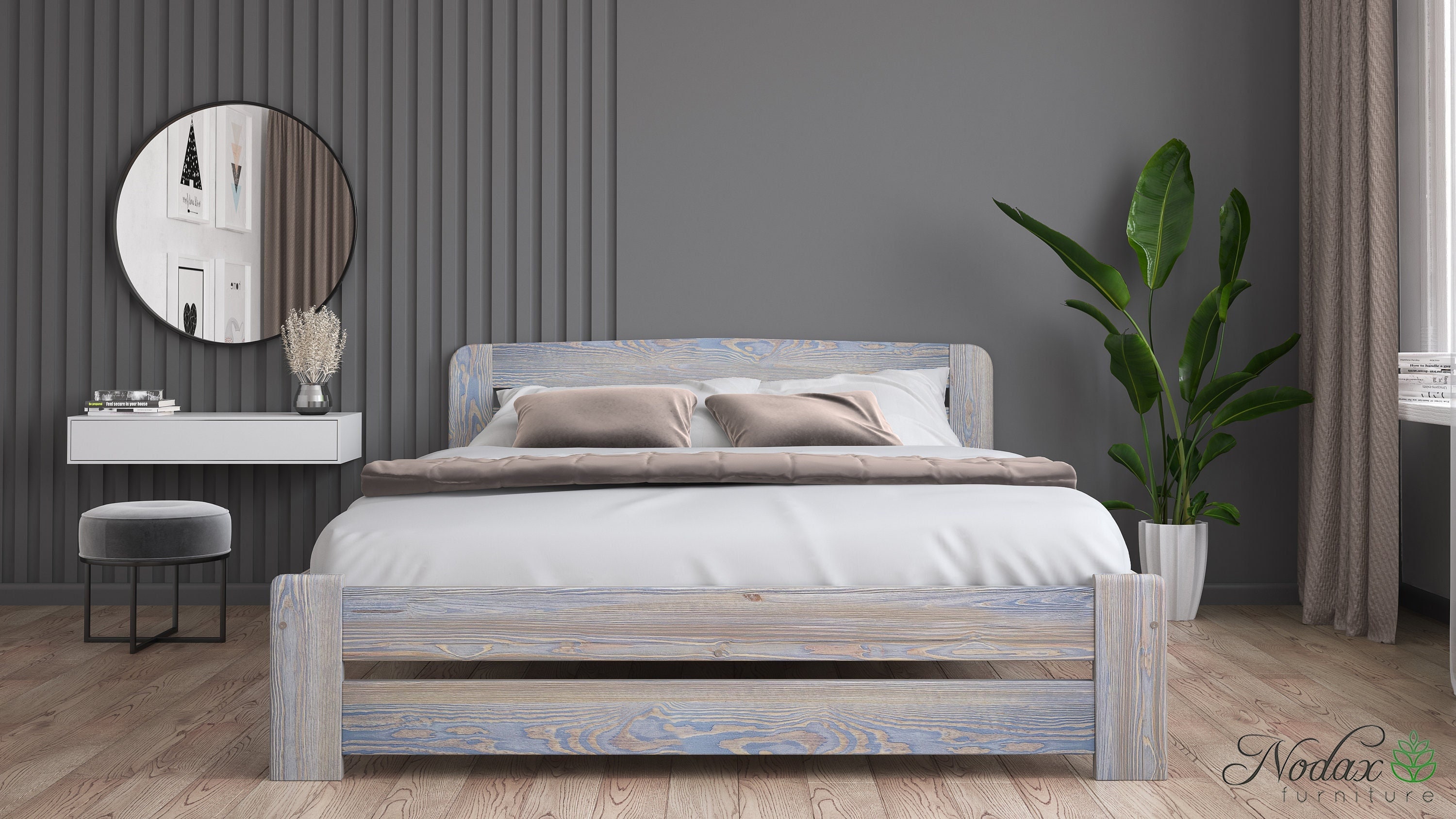Nodax Wooden Solid Bed Frame in Grey-Washed Finish in a Choice of S...