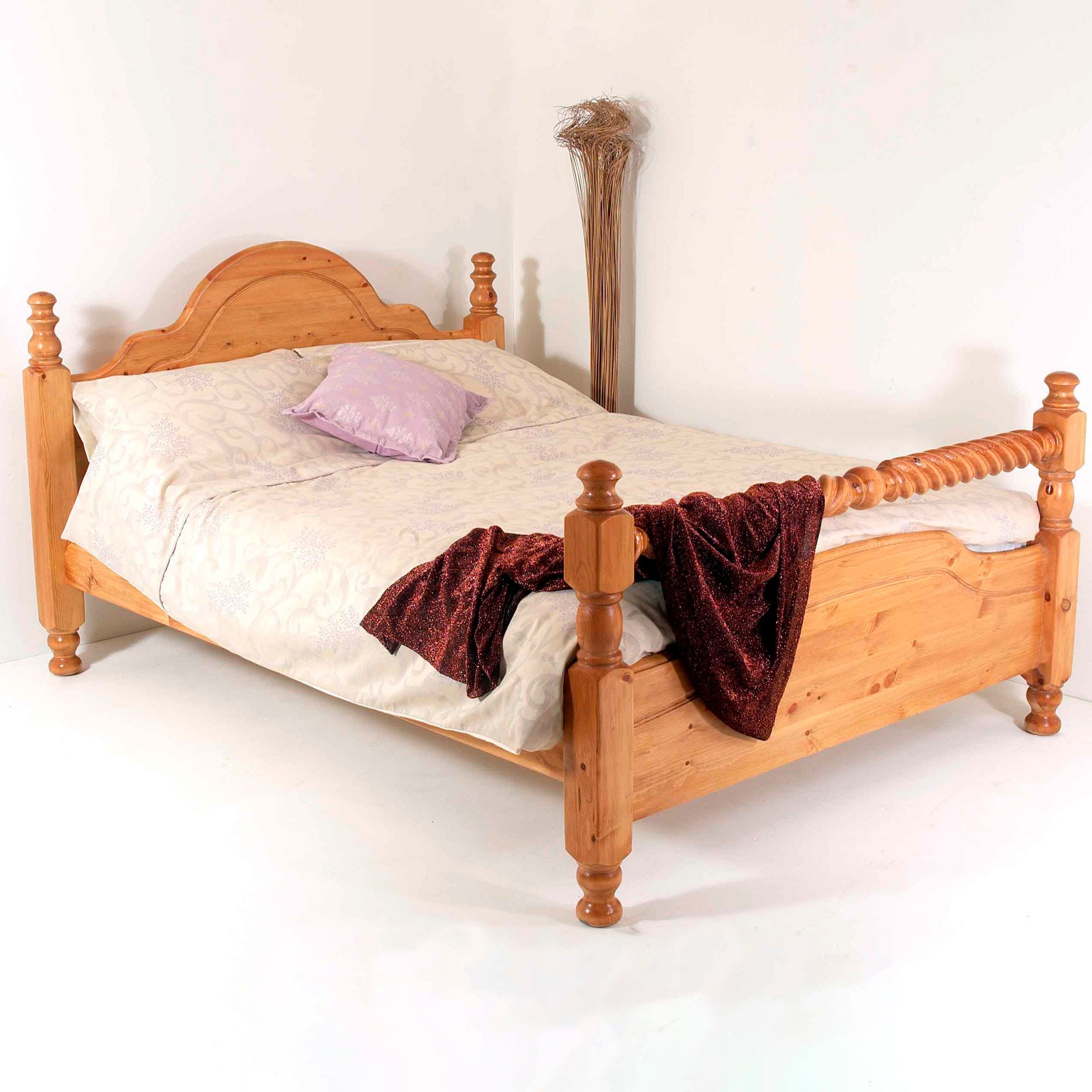Solid Pine Classic Style Bed with Barley Twist Rail (3ft-6ft Availa...