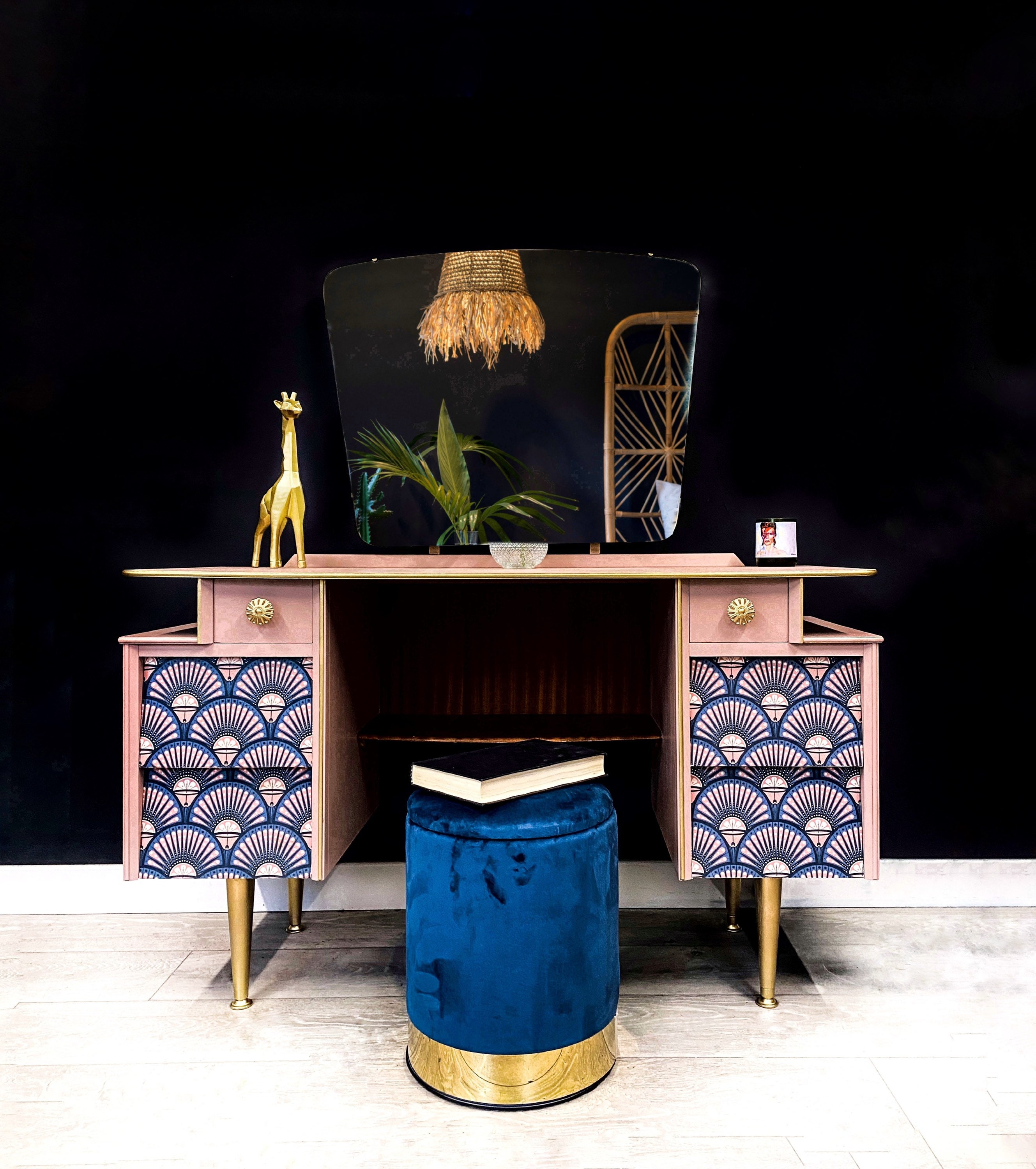 Beautiful Art Deco dressing table with designer wallpaper & vel...