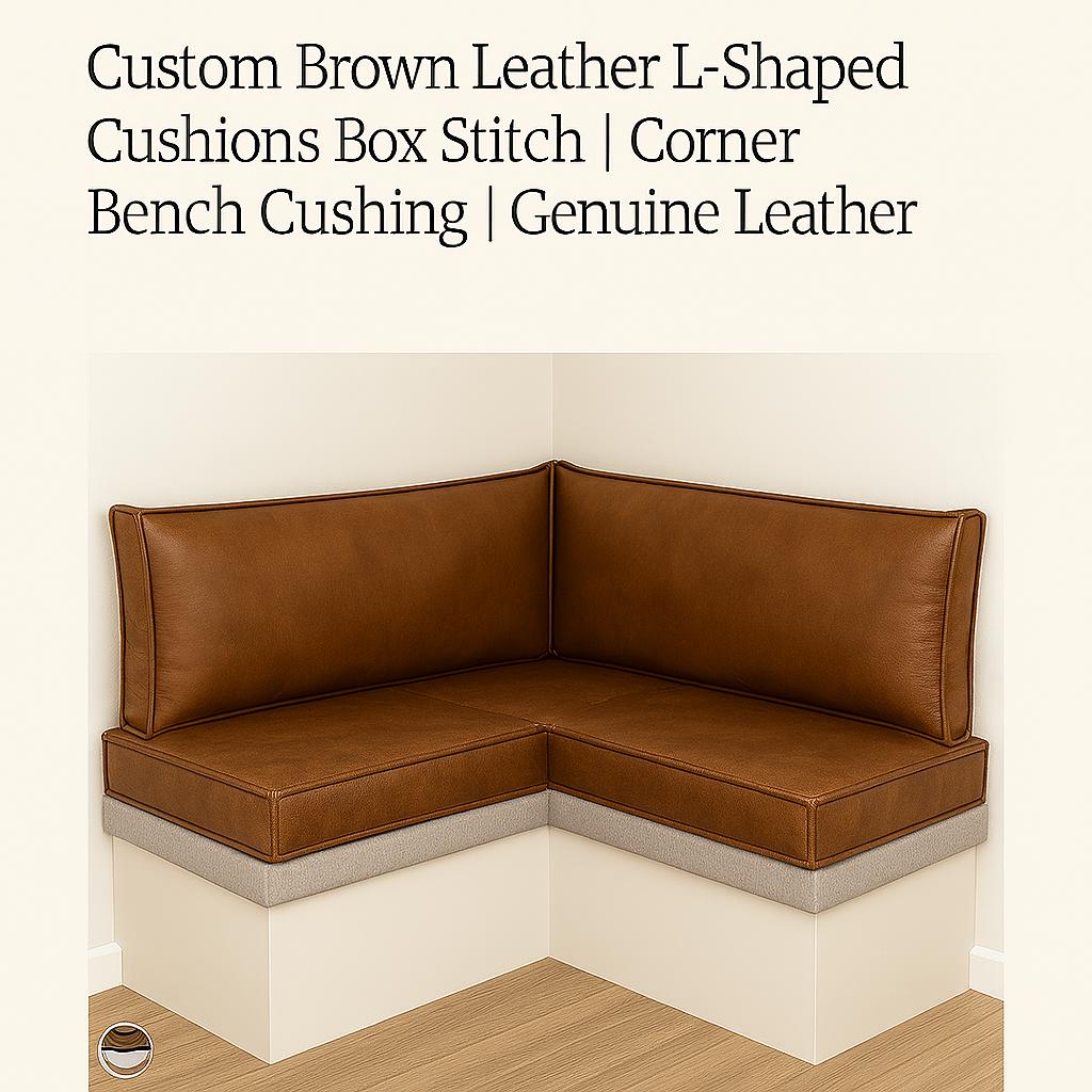 "Custom L-Shaped Brown Leather Cushion - Box Stitch with Piping Transform your dining nook or c...