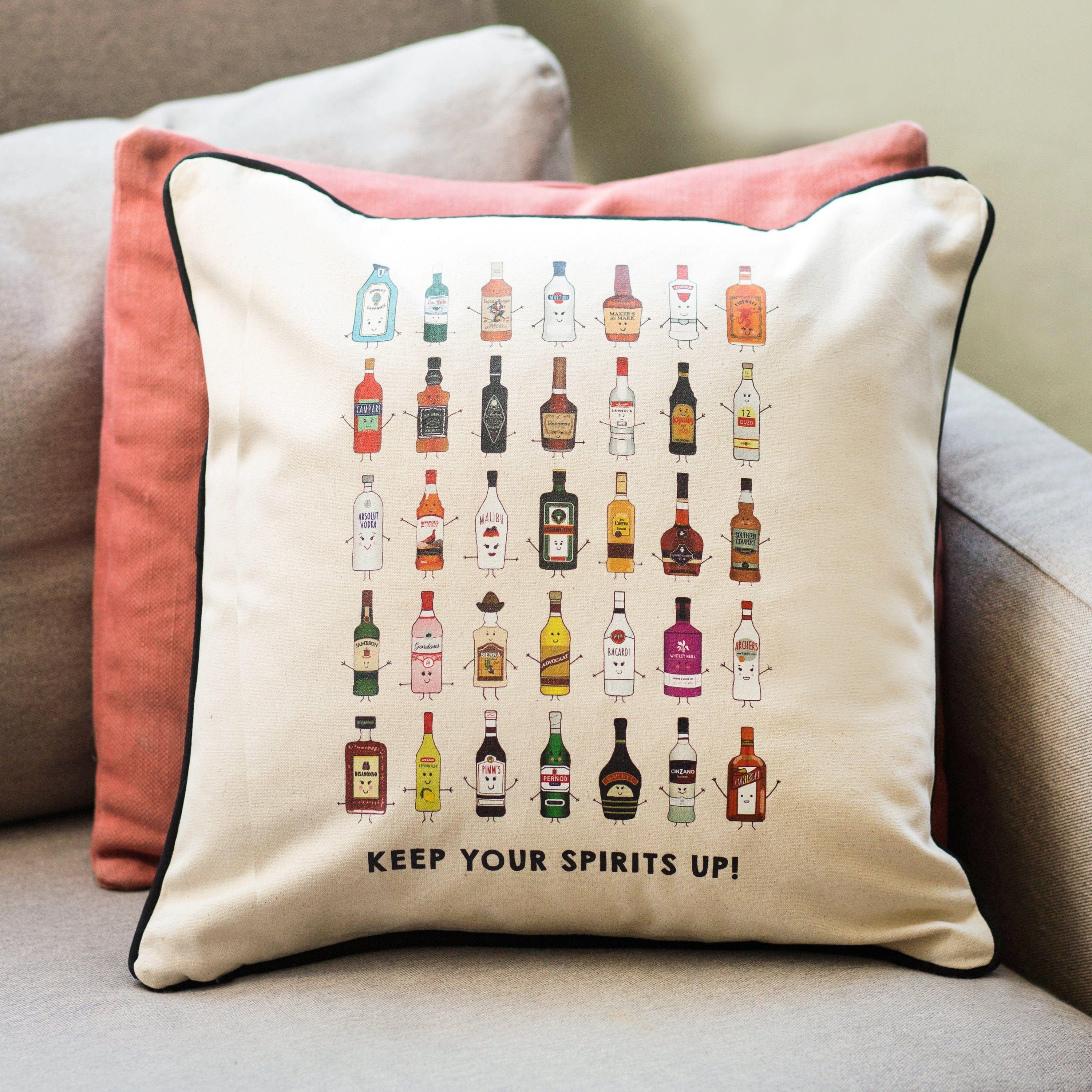 Keep Your Spirits Up Cushion Gift for Friend, Illustrated Drinks Cu...