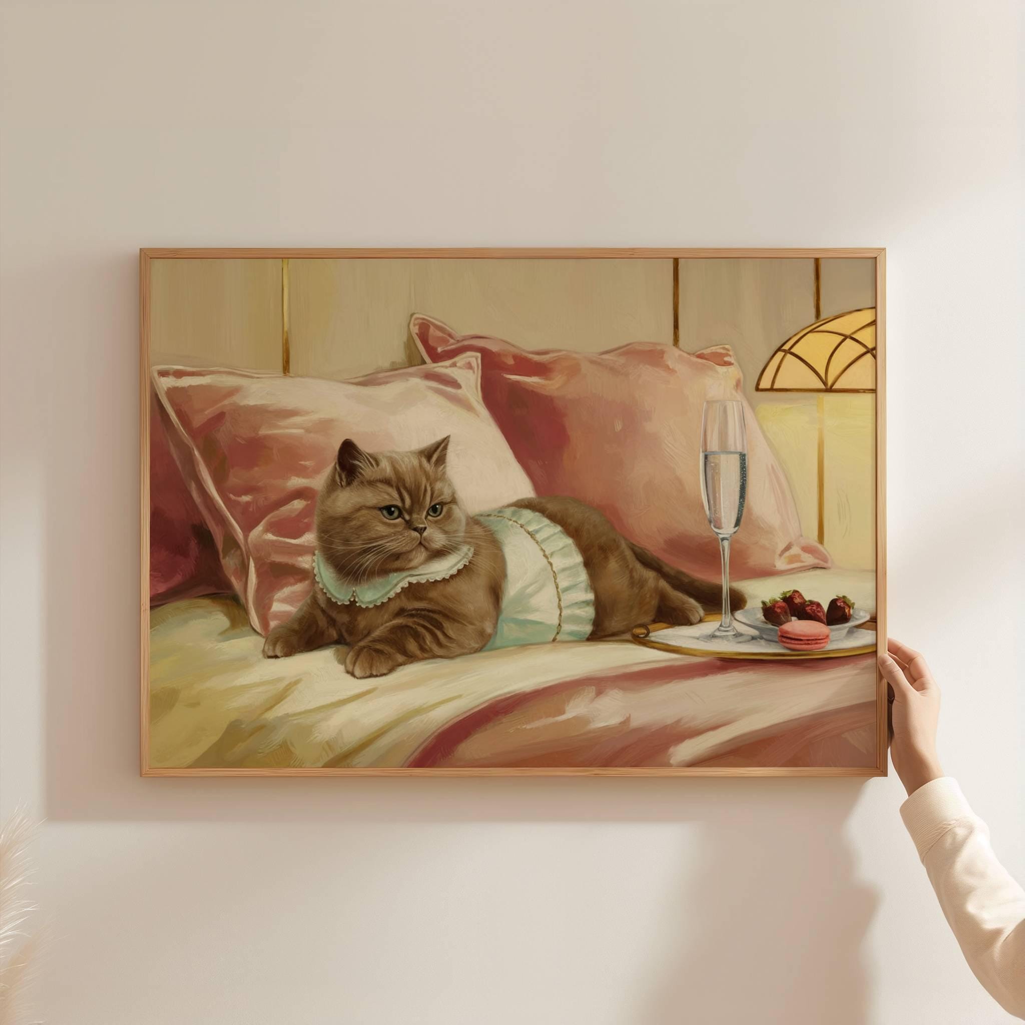 Brown British Shorthair Cat with Cocktail Art Print | Cute Quirky W...