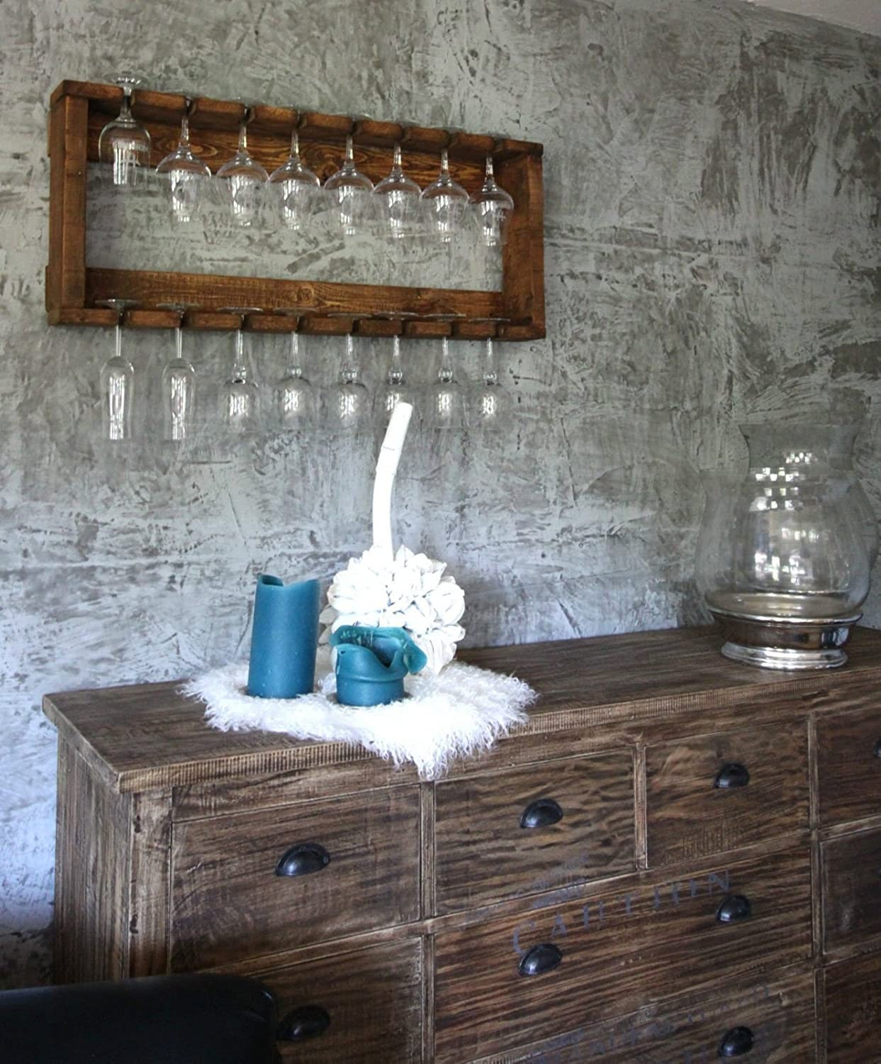 Wine glass rack made of solid wood, brown, vintage wine glass and c...