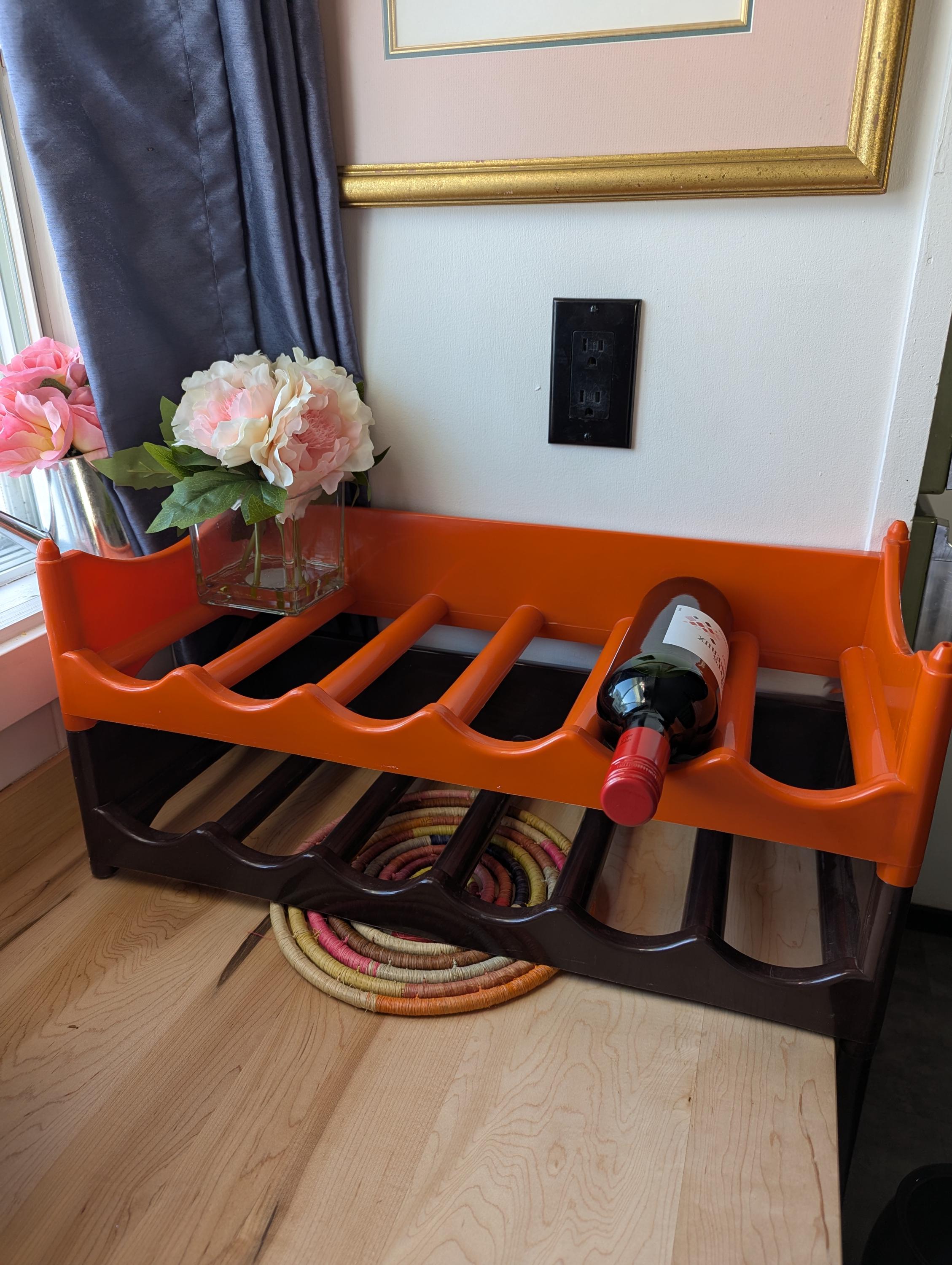 Set of 2 Vintage Plastic Stack-able wine rack / Orange Brown bottle organizer 1970s Made in Canada S...