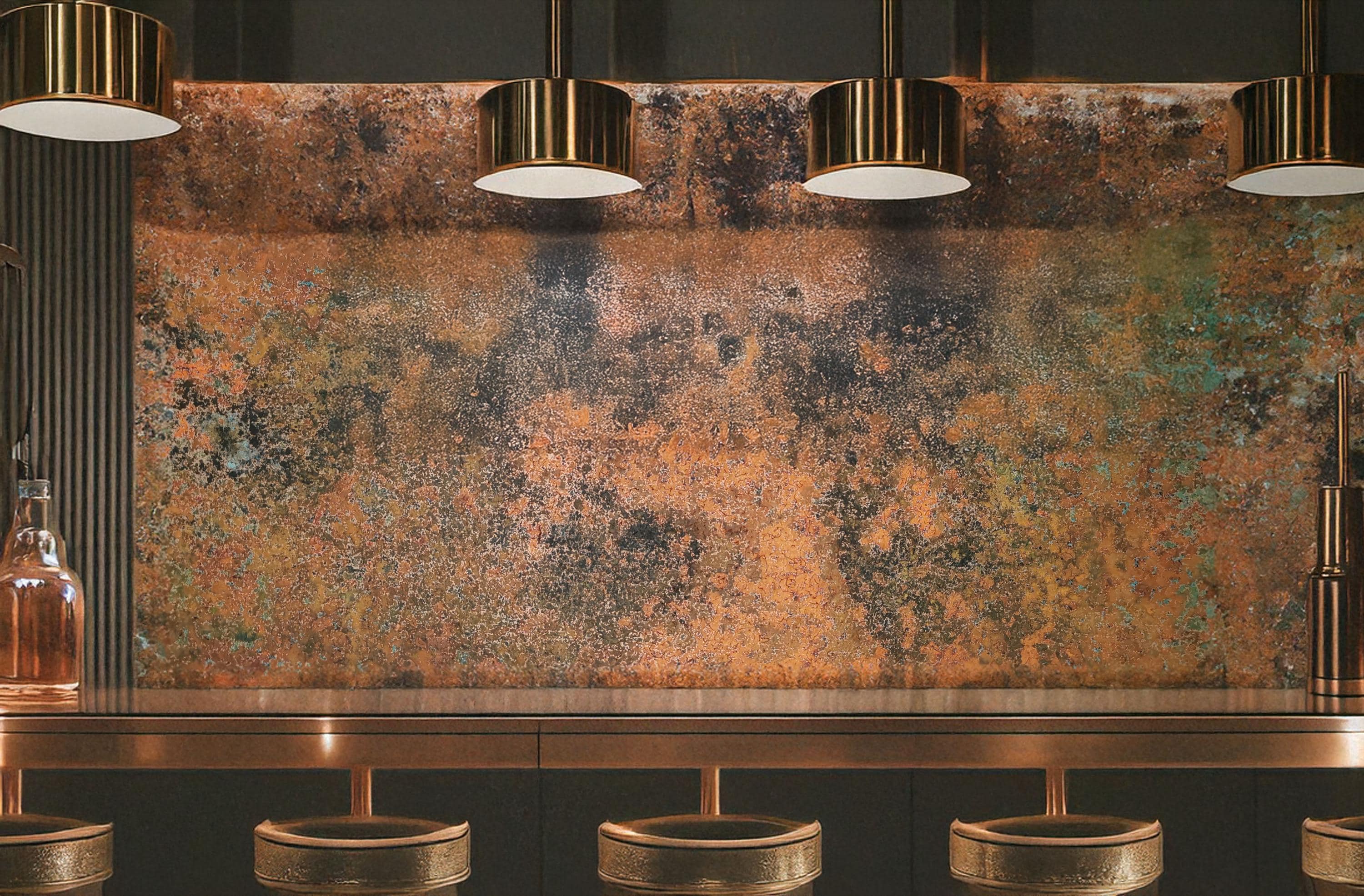 Copper Bar Backsplash Panel - Mystic Copper Nebula - Real Metal Wal...