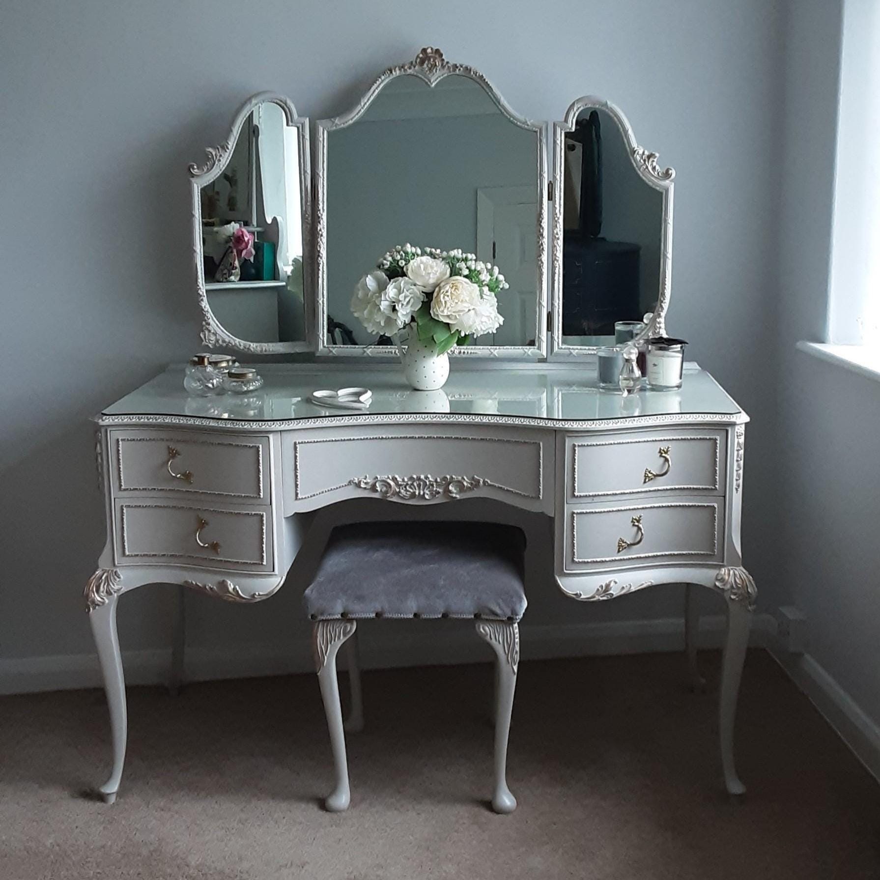 Vintage French Louis Style Antoinette Dressing Table ,Mirror &Stool. Produced in the sixties by ...