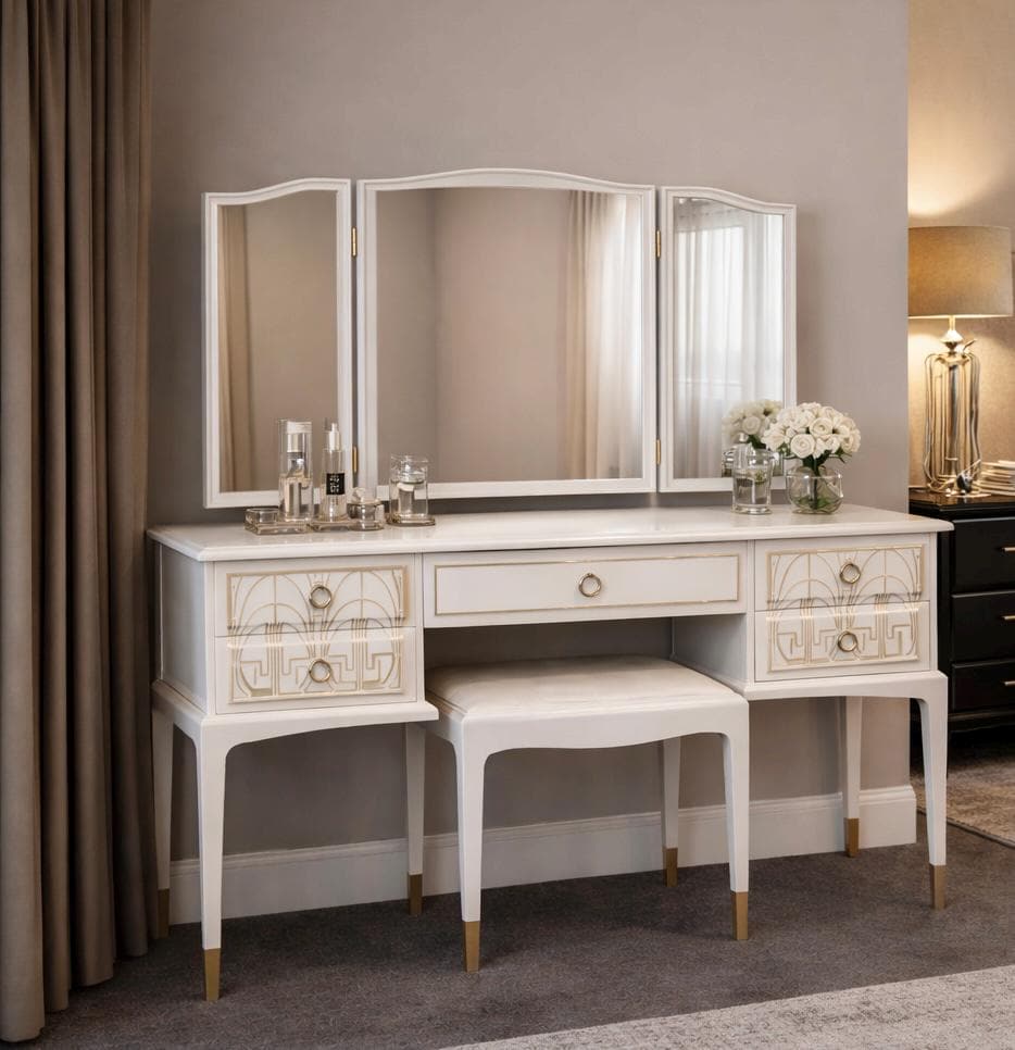 Olympus Louis Style Antoinette Dressing Table with Mirrors and Stoo...