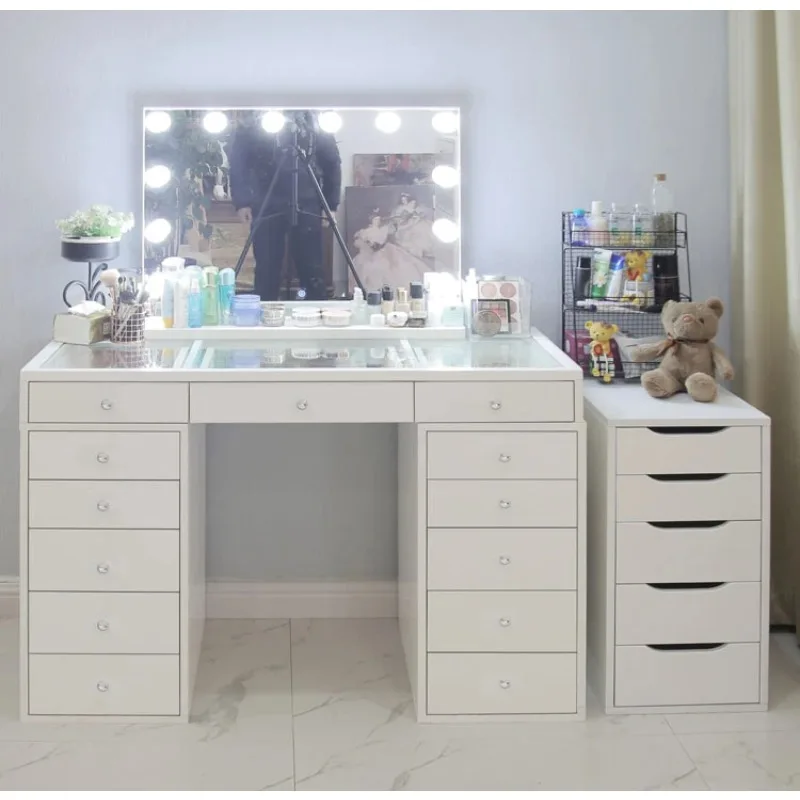 Custom Vanity Desk Dressing Table Makeup with Mirror and Lights Lar...