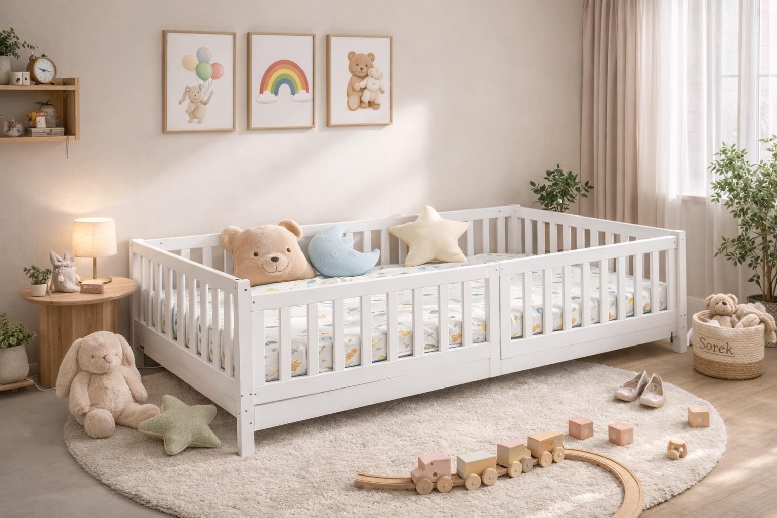Provide your child with a safe, natural and soothing sleeping space. A Montessori bed designed to pr...