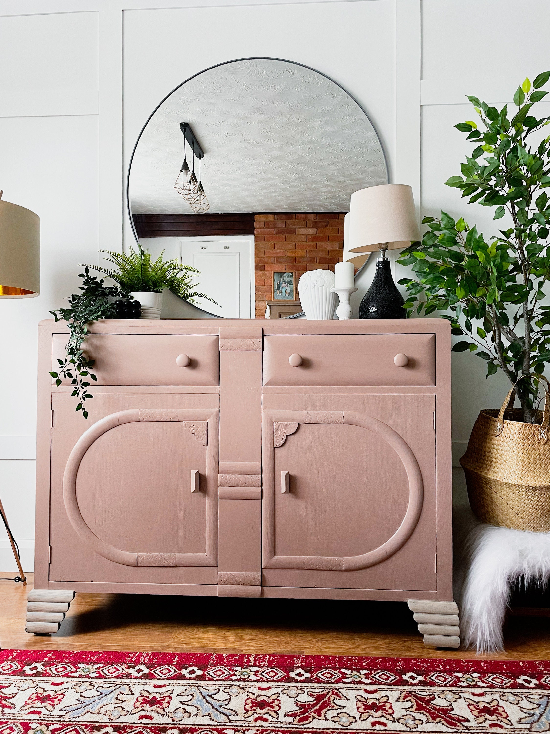 SOLDSideboard cabinet cupboard Art Deco furniture with storage pink...