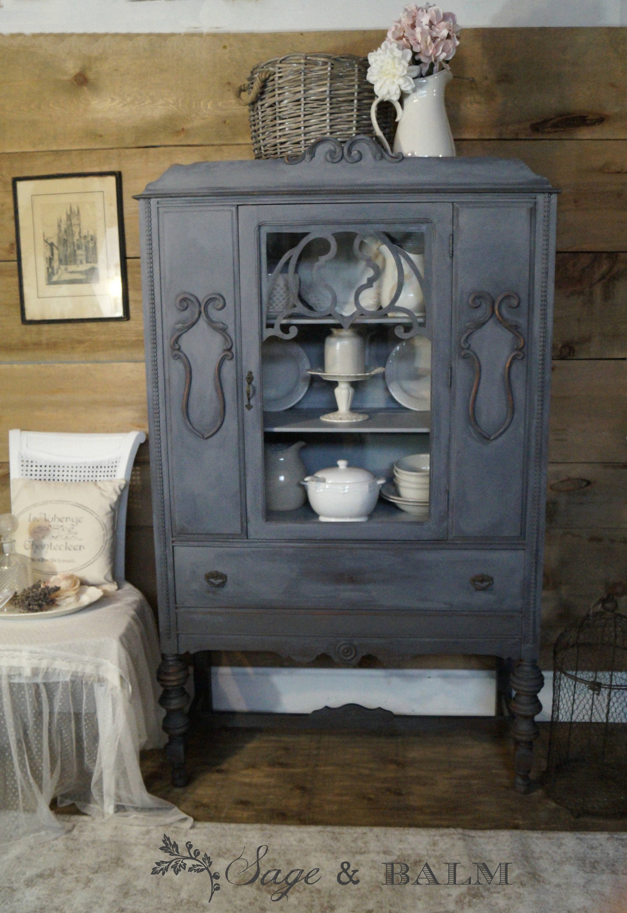 SOLD | Grey gustavian shabby chic antique china cabinet hutch | dis...