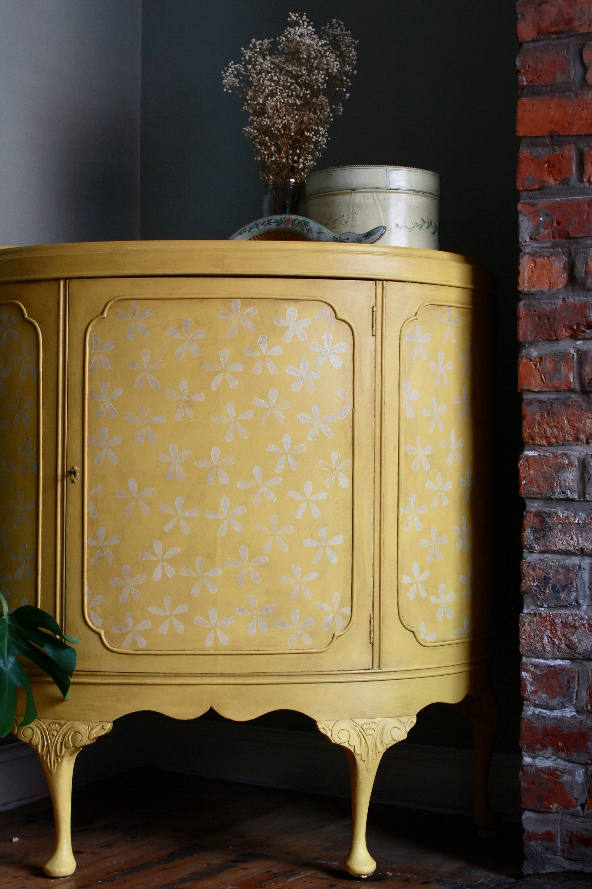 Antique Bow Fronted Cabinet, Hand painted furniture, cabinet