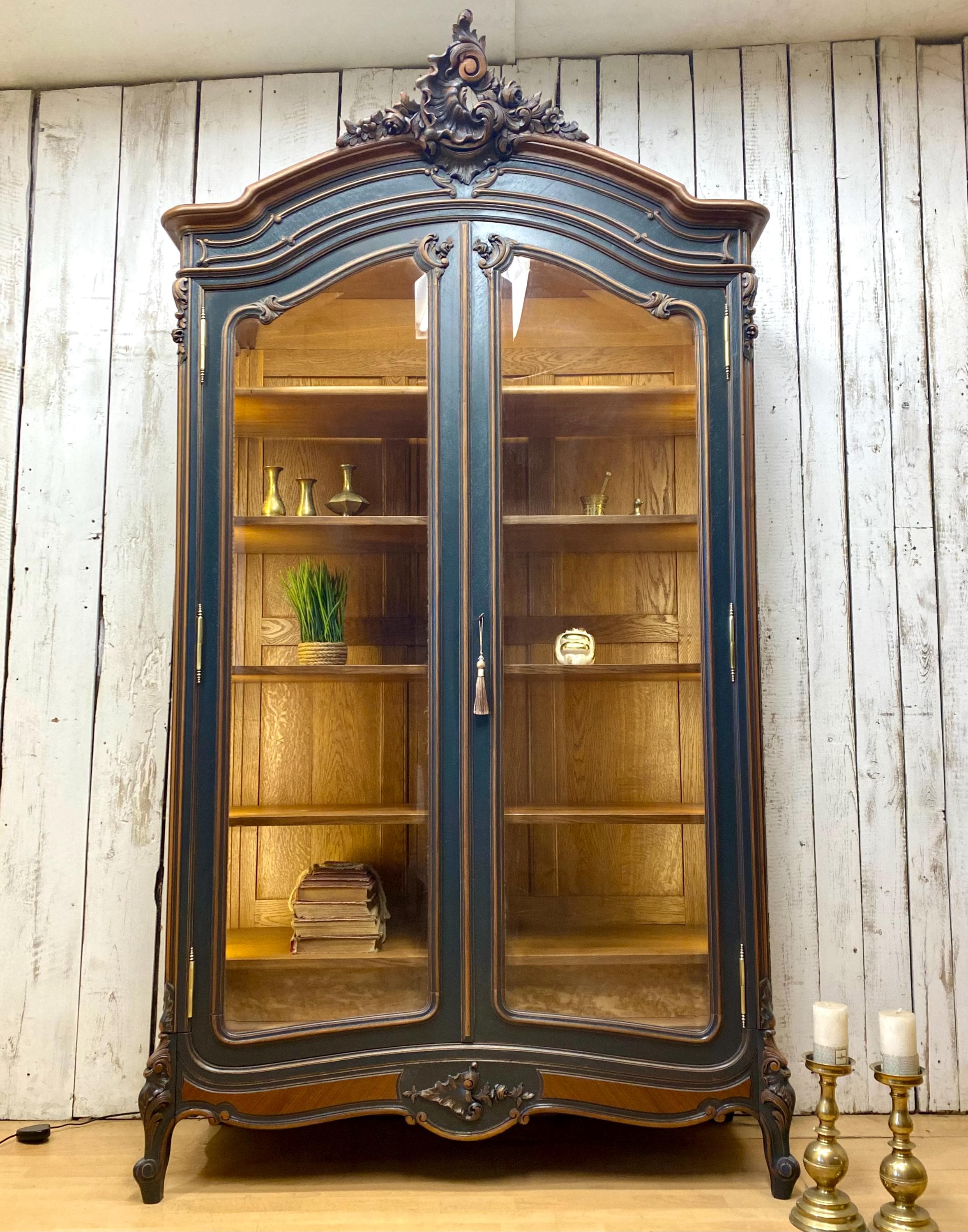 French Antique Display Cabinet Powder Blue Carved Ornate Cabinet Co...
