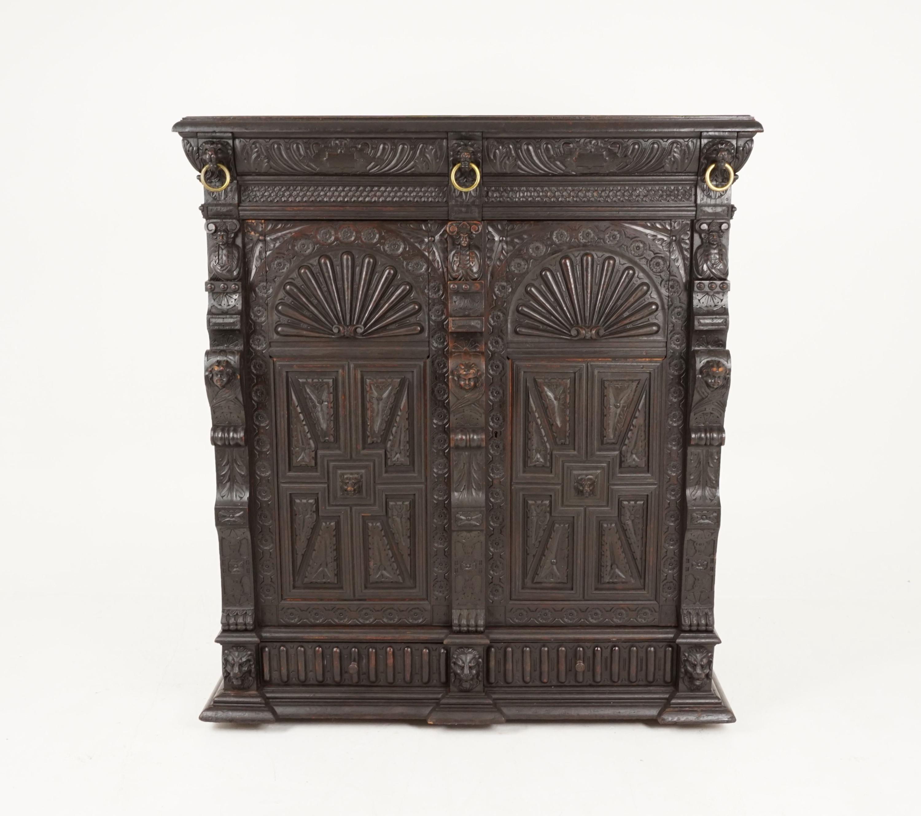 "Antique French Carved Oak 19th Century Hall Cabinet, Side Cabinet, France 1880, H068 France 18...