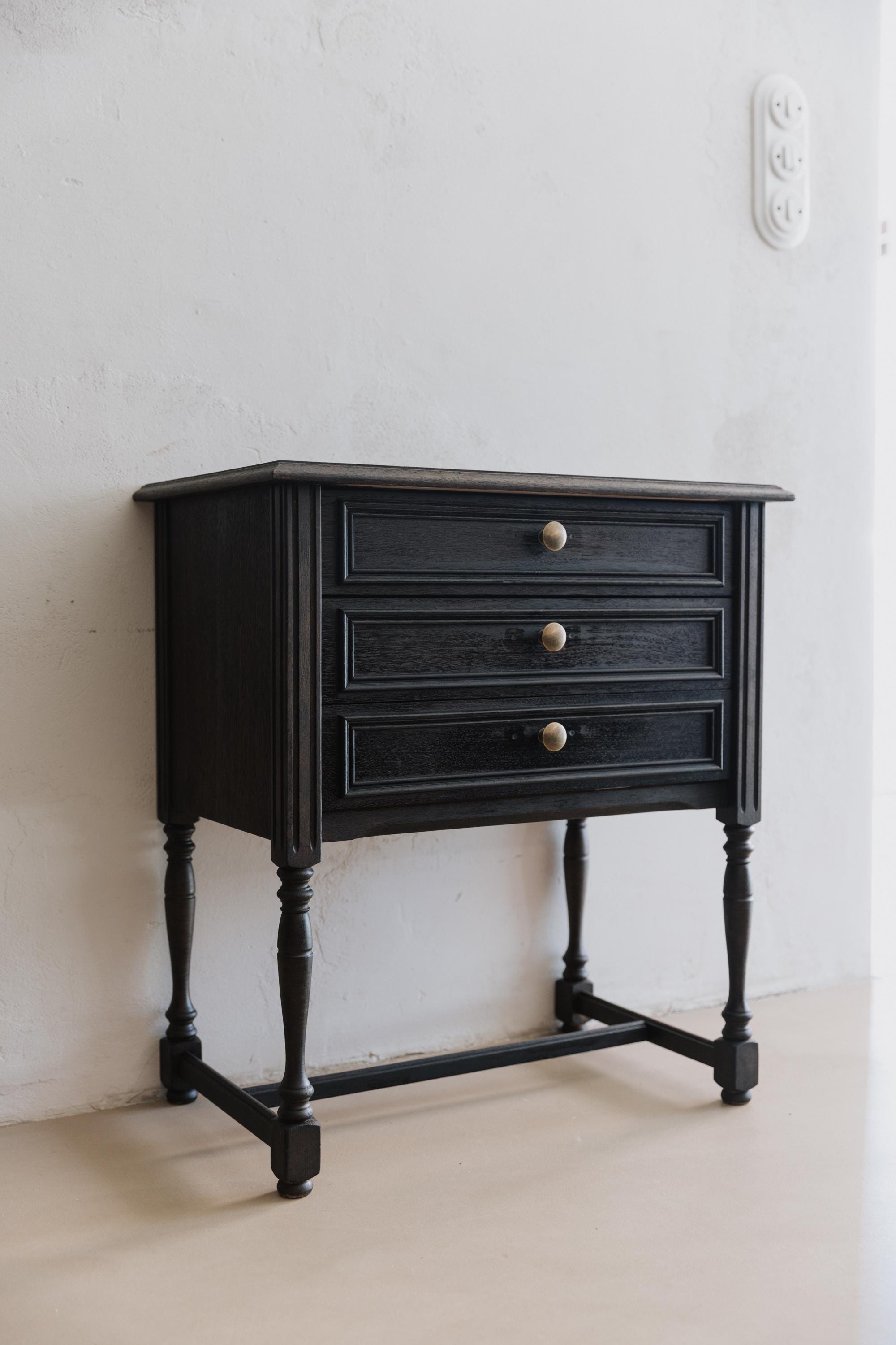 Unique piece! Small vintage chest of drawers made of solid oak - black, antique, and restored This n...