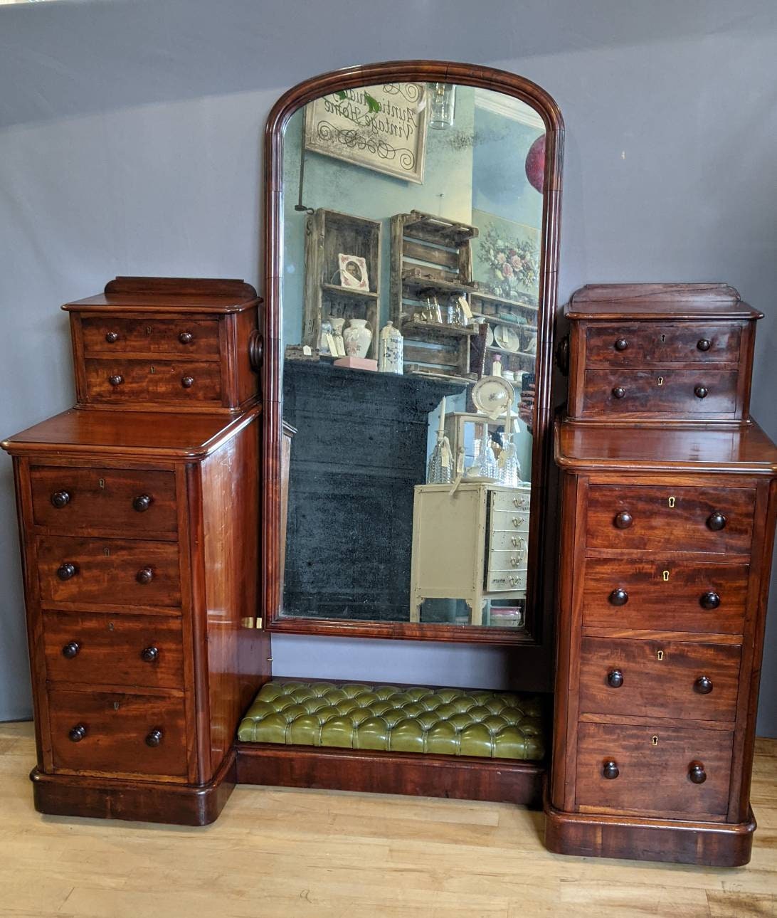 Antique Mahogany Double Pedestal Dressing Mirror Table - c1850s - D...