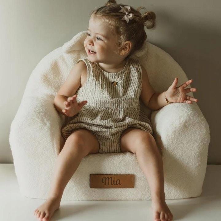 "Foam Armchair for Kids - Personalized with Name - Teddy Boucle Beige with Cute Ears Imagine a ...