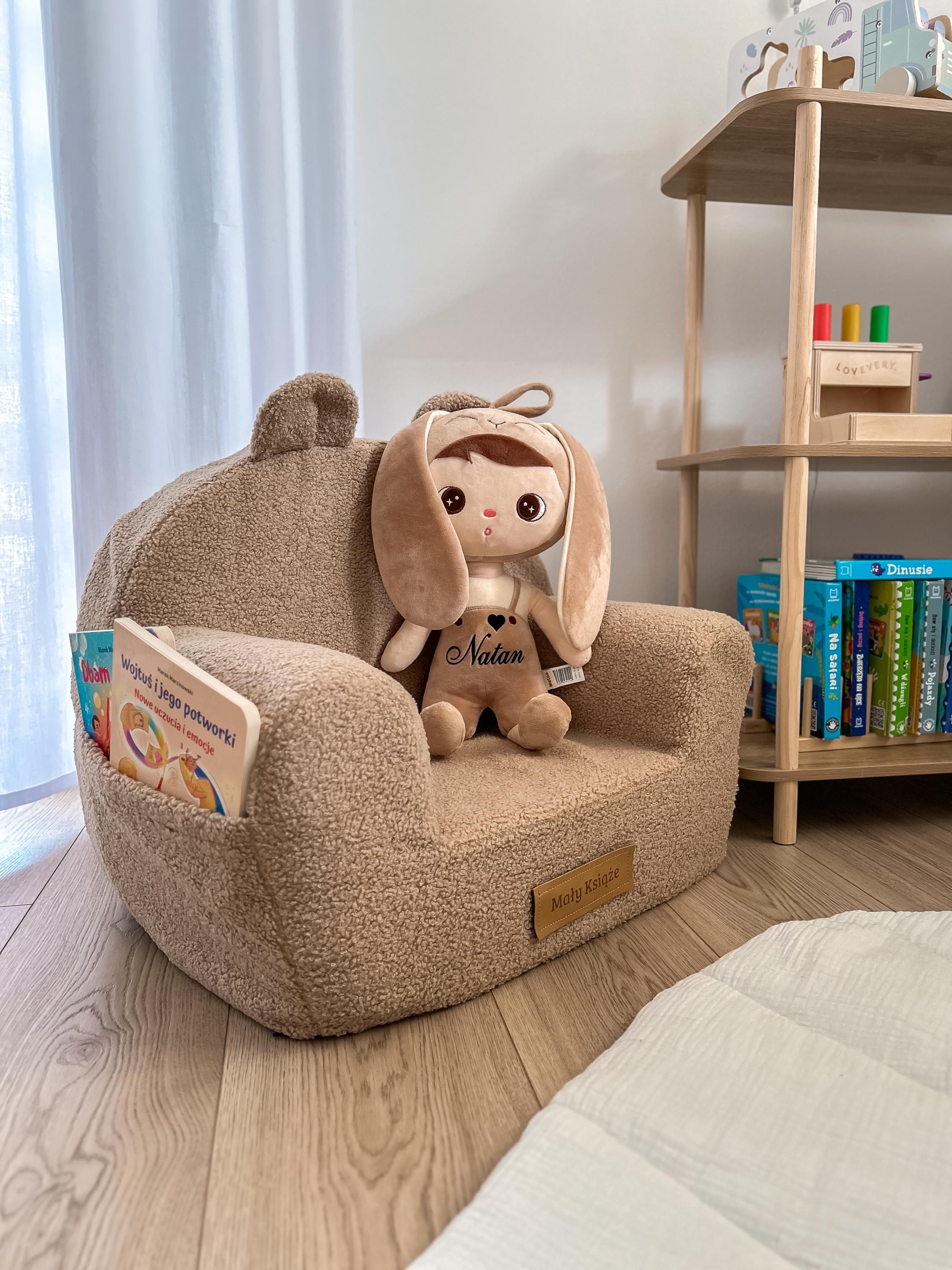 "Foam Armchair for Kids - Personalized with Name - Teddy Boucle Dark Beige with Cute Ears Imagi...