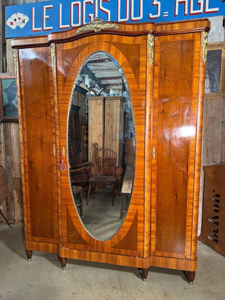 Antique French Art Nouveau Walnut Kingwood Triple Armoire Wardrobe,...