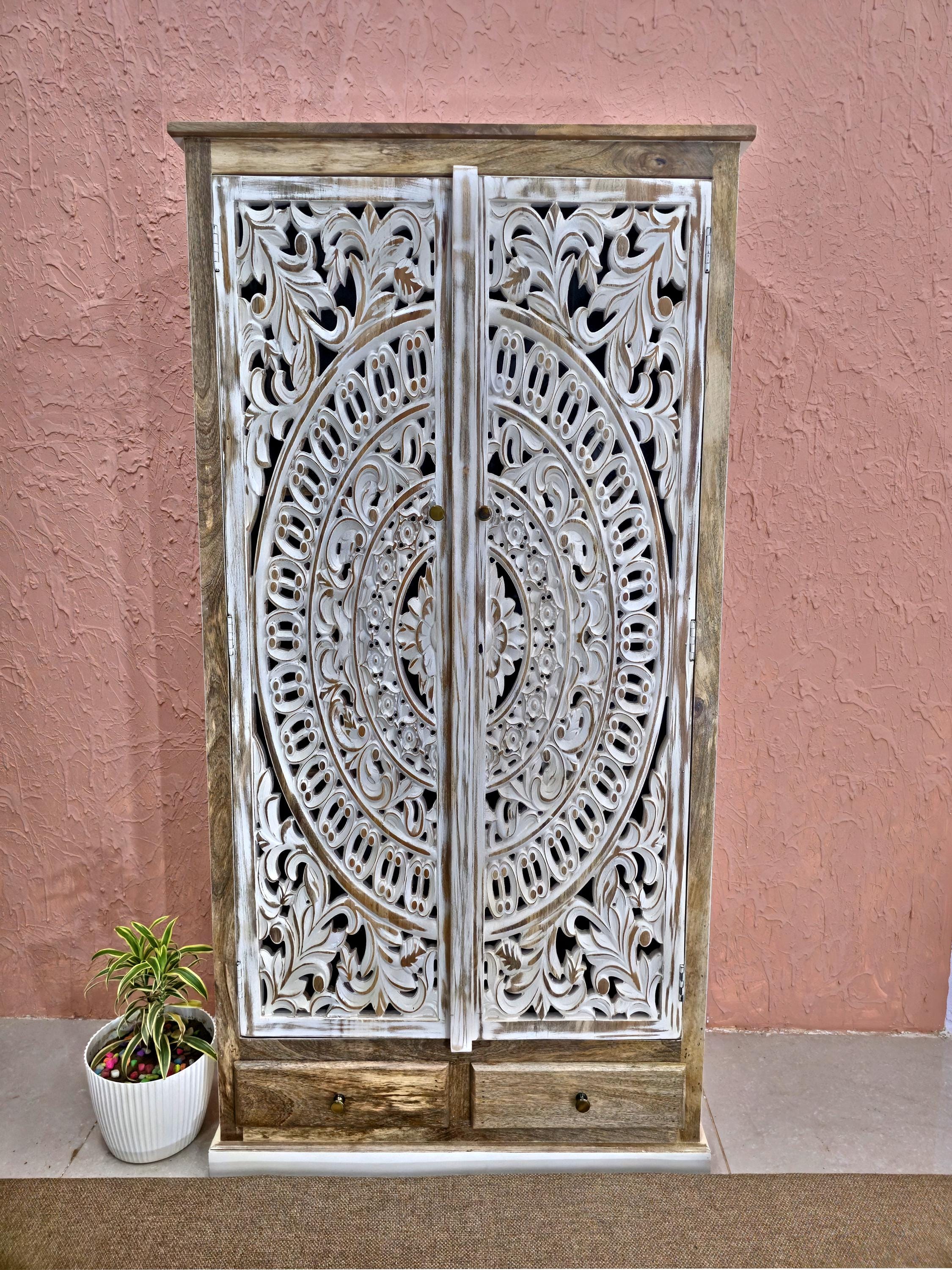 Bring bohemian charm and timeless elegance to your home with our beautifully ornately carved armoire...