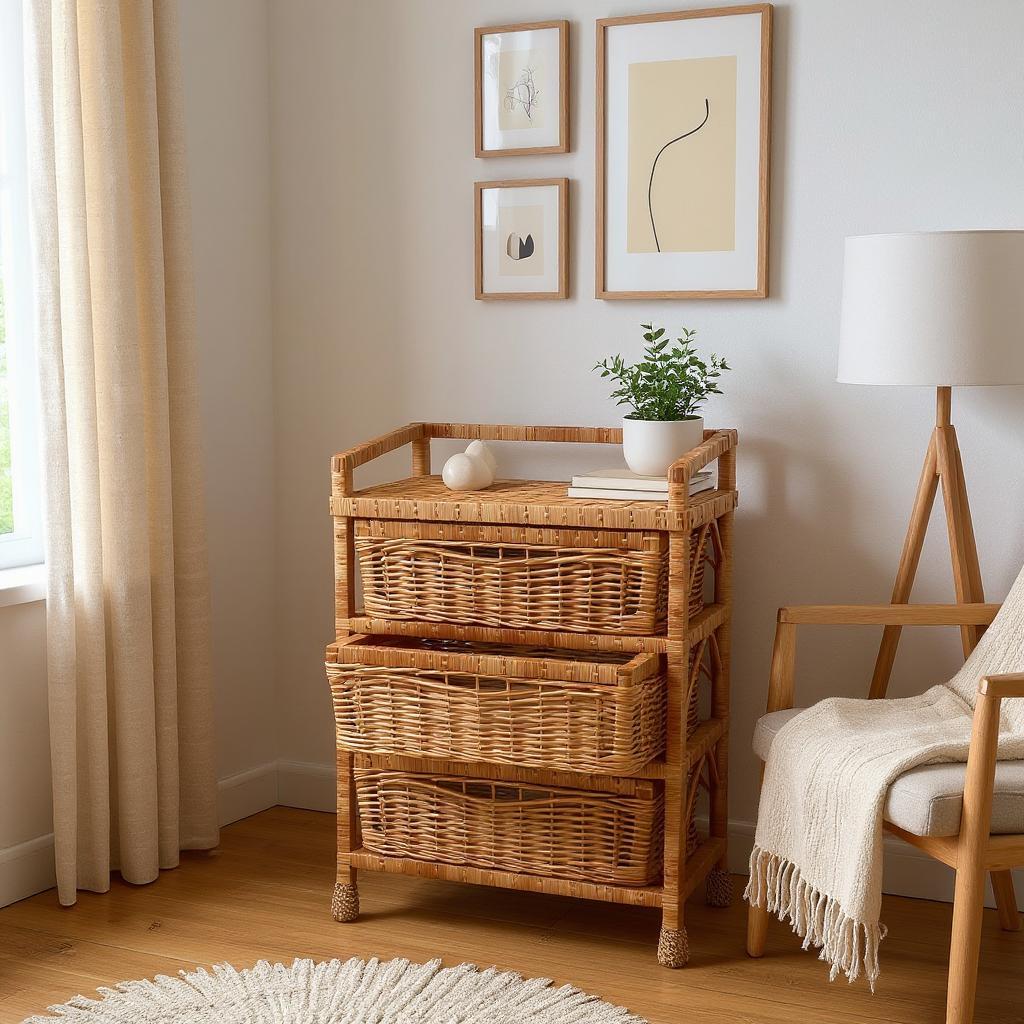Wicker dresser, Wicker organizer with drawers, Wicker nightstand, R...