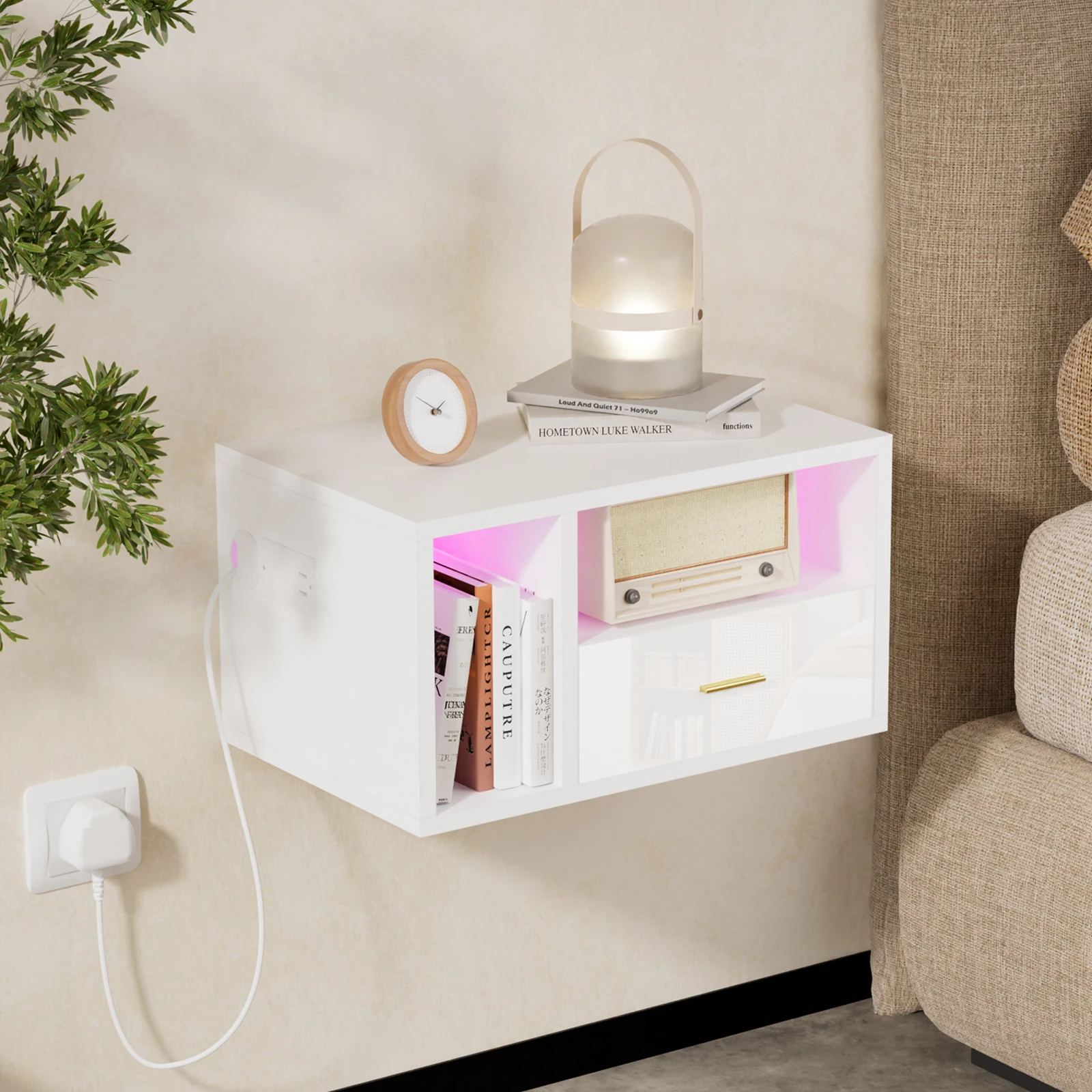 Nightstand With Drawers Wall Bedside Table With Light Modern LED Nightstand With Charging Station Wa...