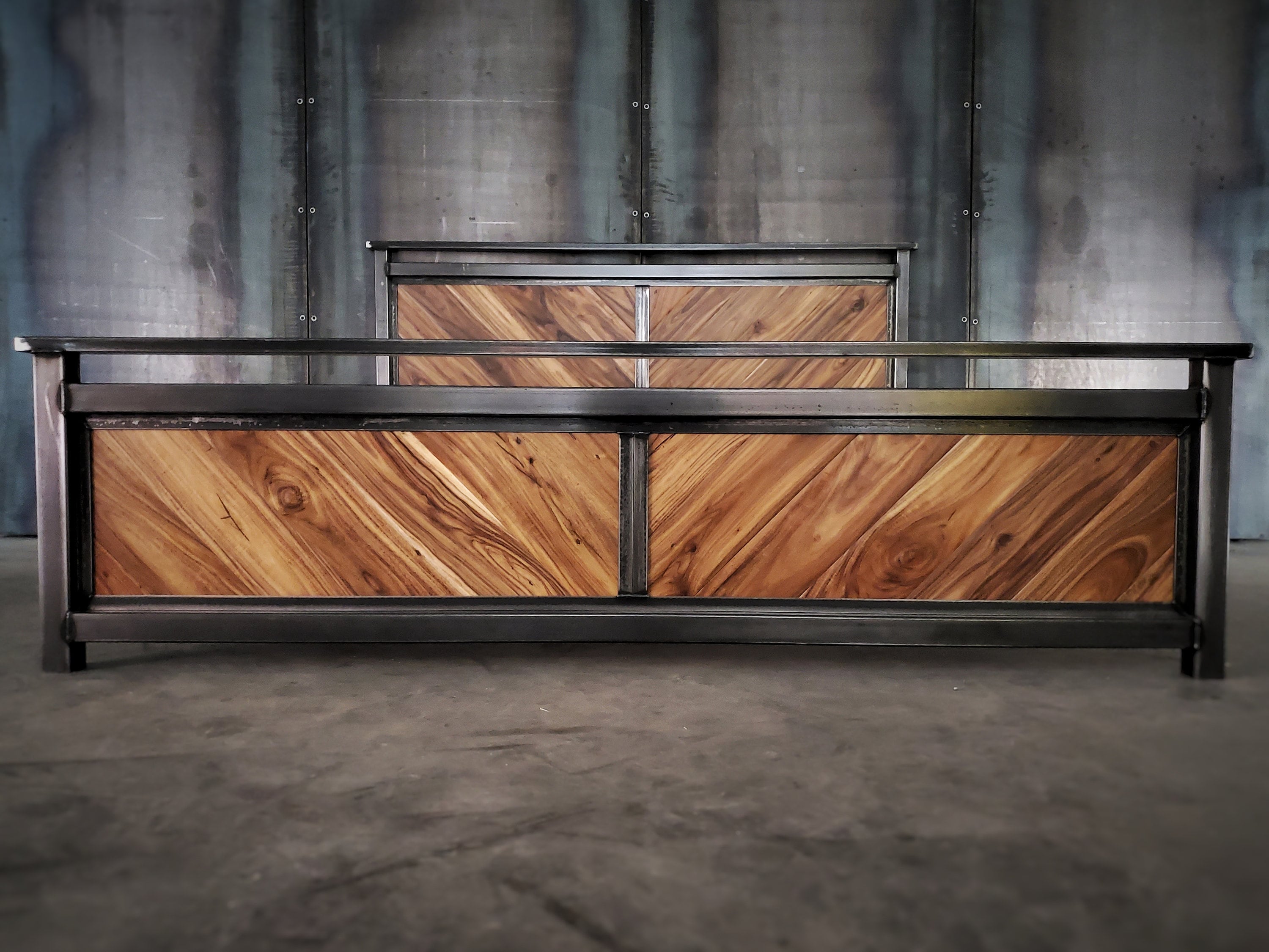 Platform bed, modern industrial headboard, foot board, and bed fram...