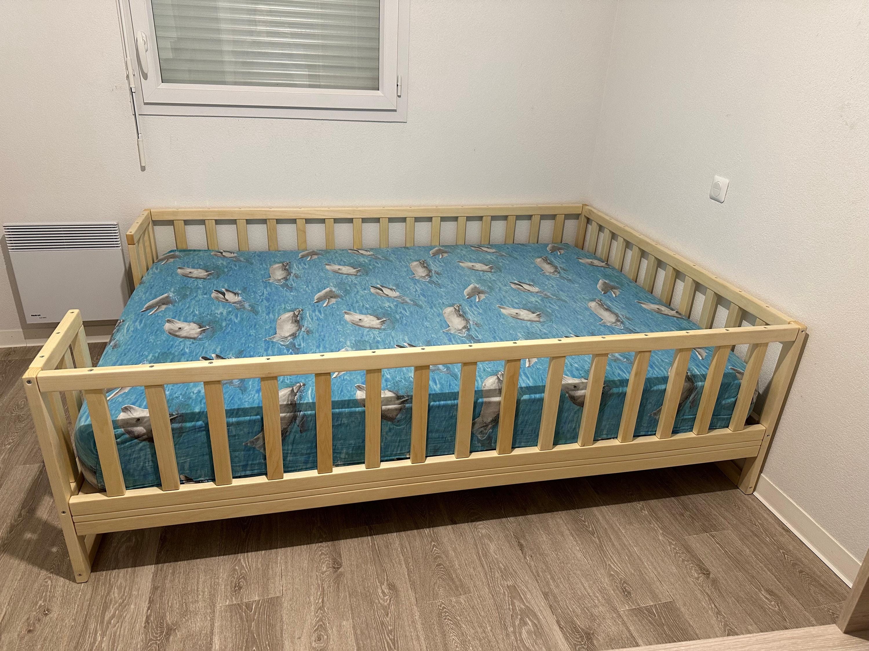 Platform bed with rails Montessori bed with fence, Childrens bed on...