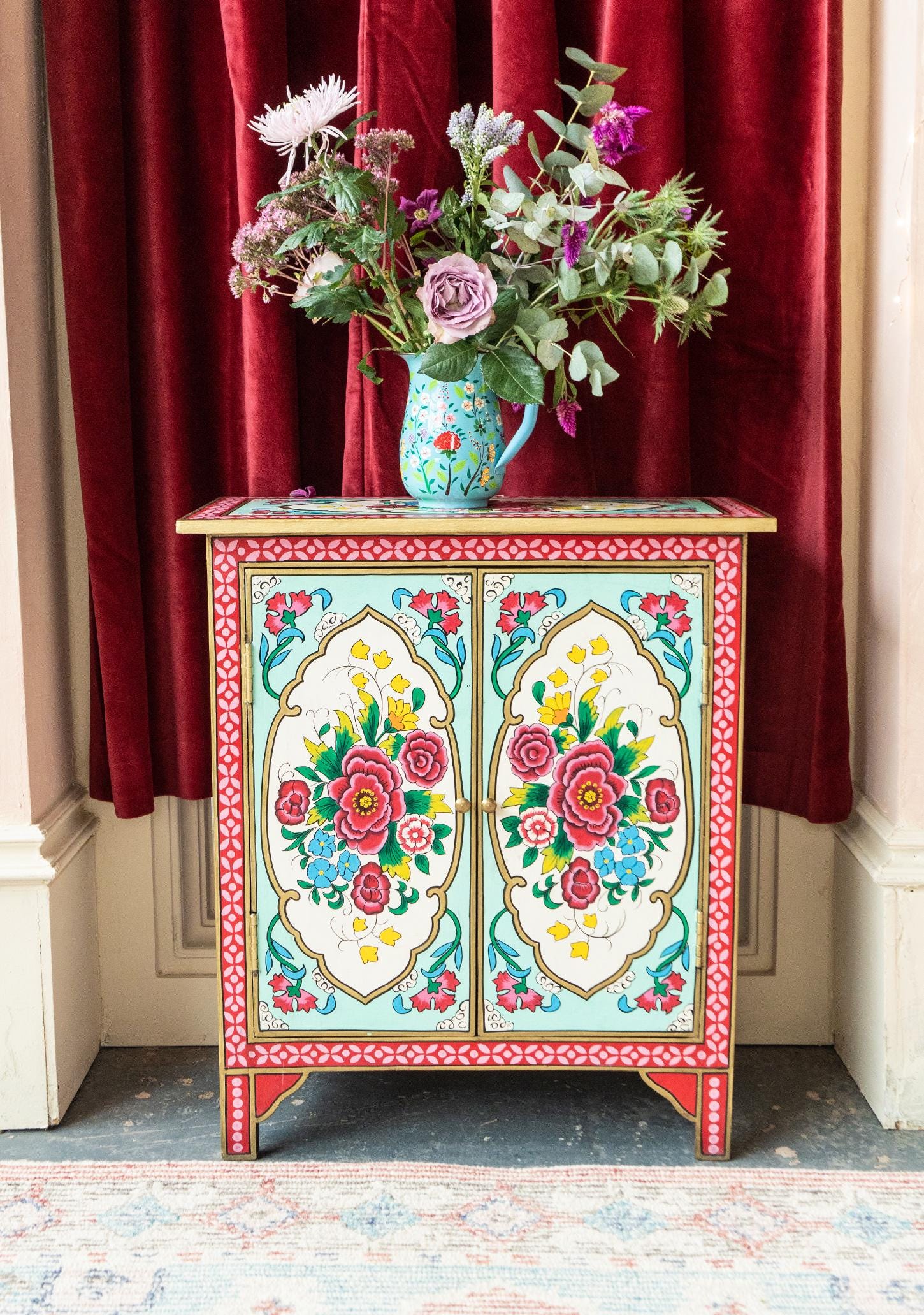 Hand-Painted Rikisha Indian Cupboard - Double Door, Vintage Bedroom...