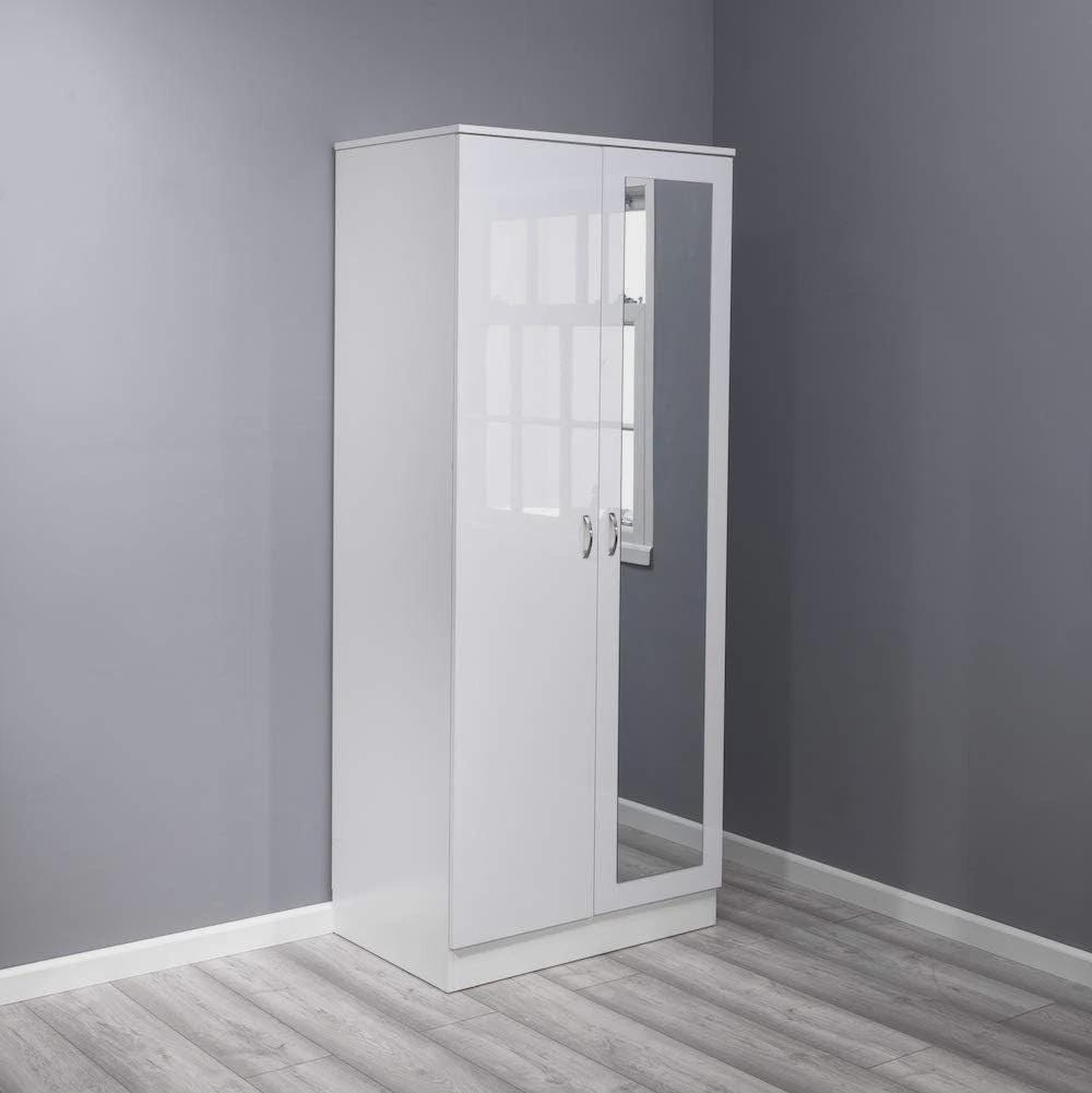 Modern 2 Door Storage Wardrobe with Mirror Closet Bedroom Furniture...