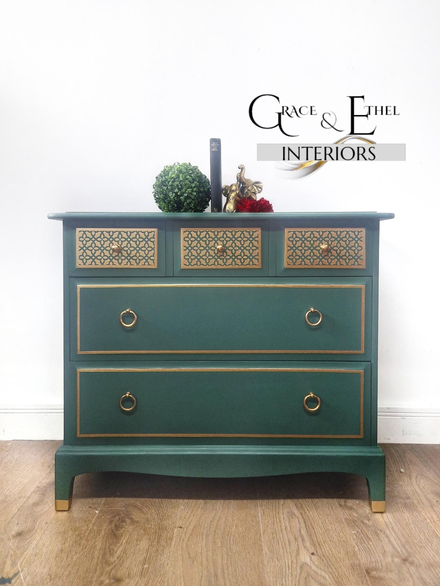 Stag minstrel Chest of Drawers, oversize Bedside Table,green and go...