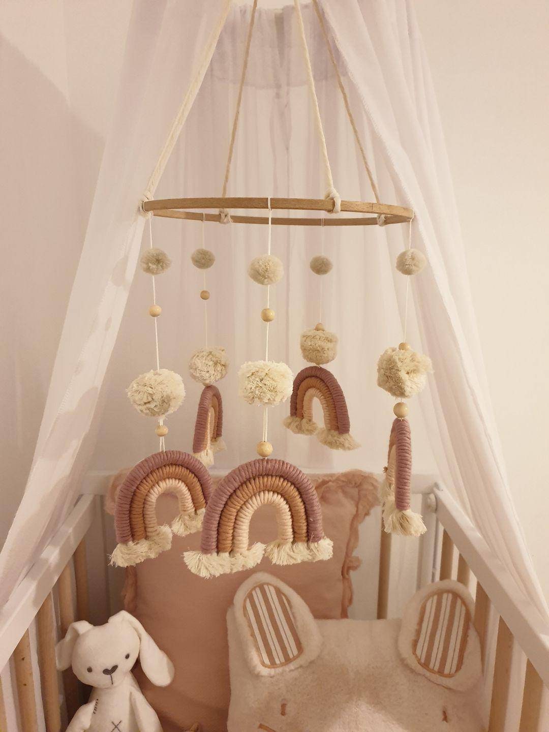 Macrame Baby Mobile, Rainbow and Cloud Baby Mobile, Nursery Mobile,...