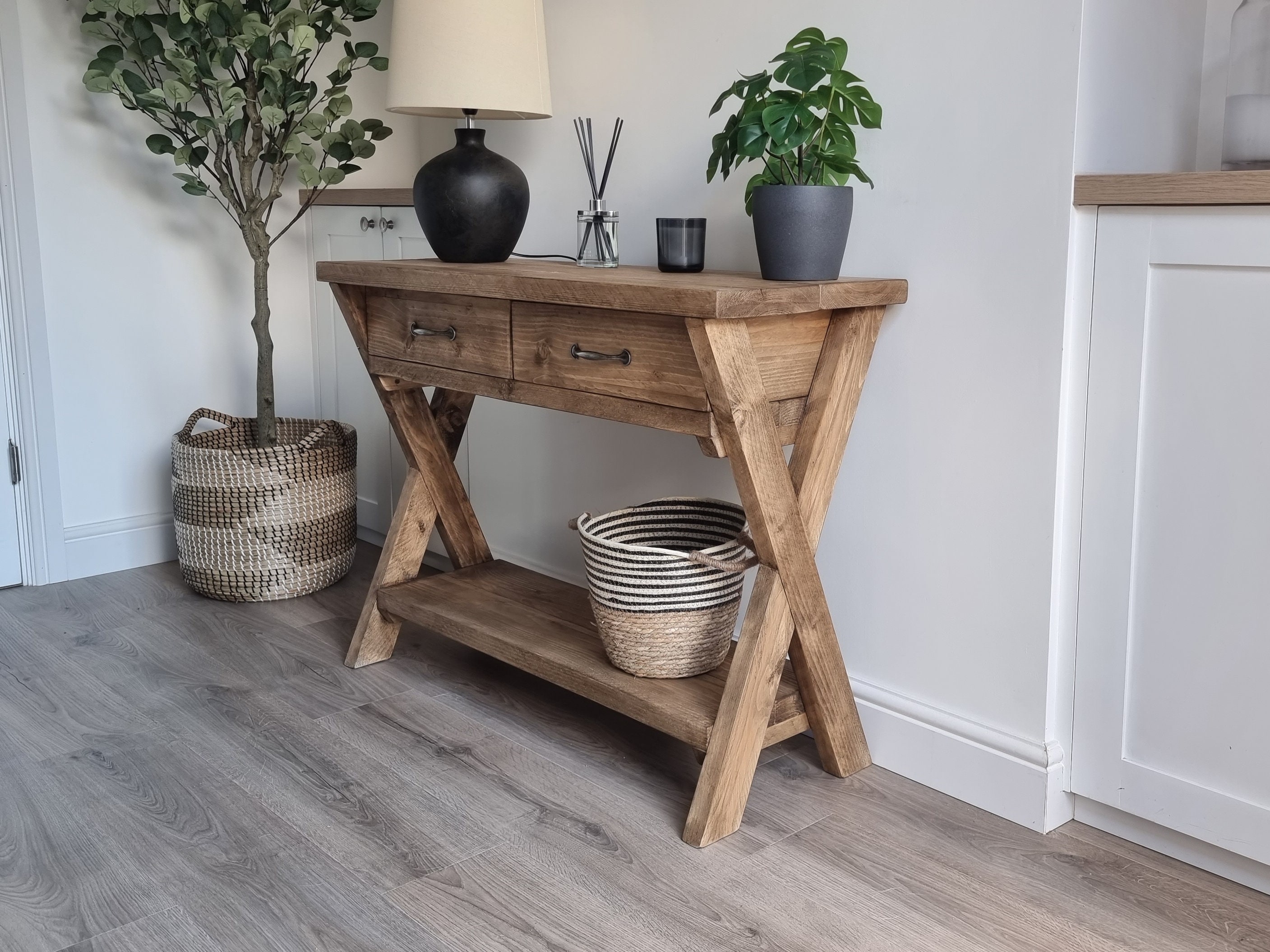 Reclaimed wood console table with drawers, rustic console table, fa...