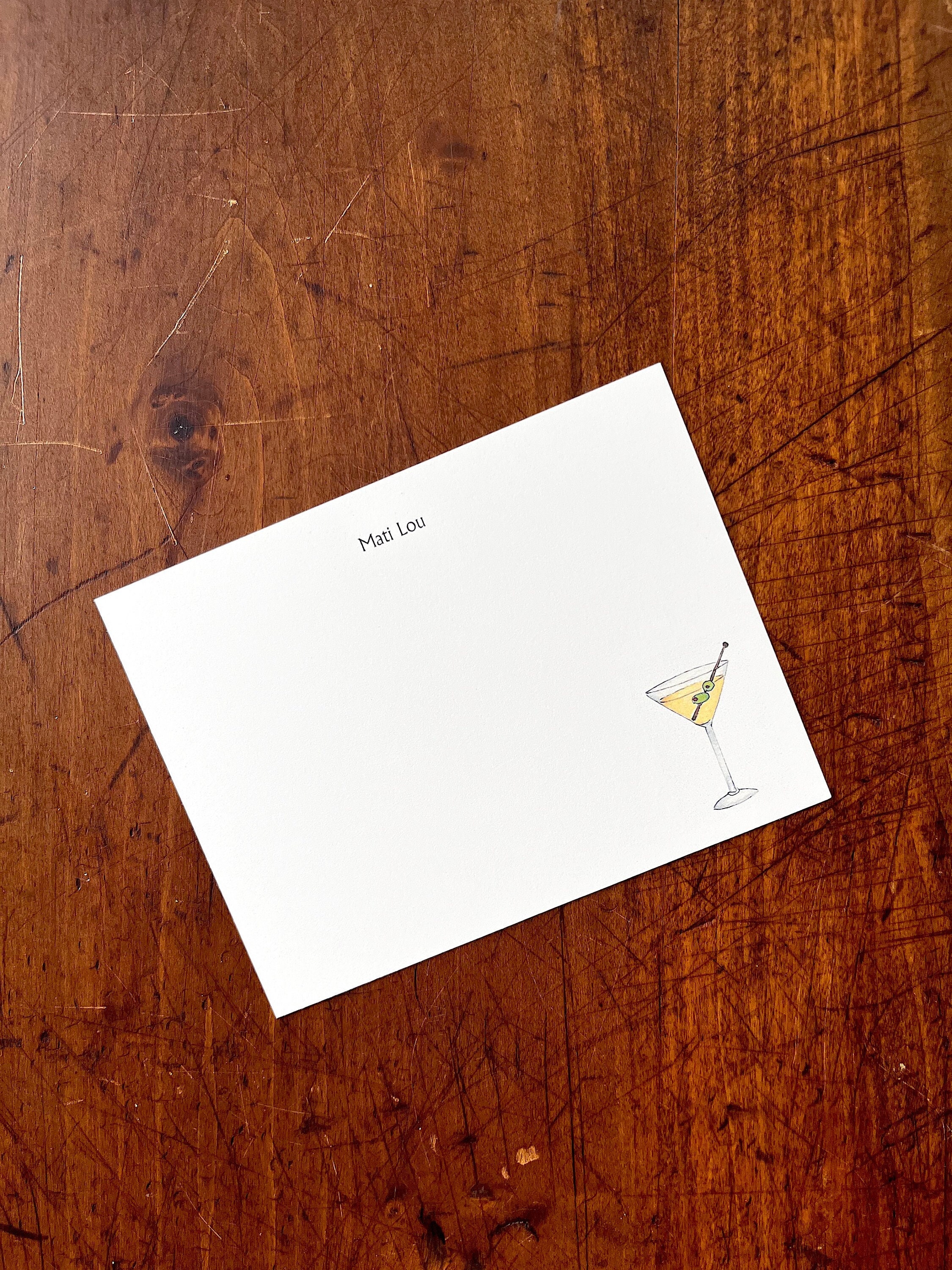 Personalized Martini Cocktail Mixed Drink w Olives Notecard Station...