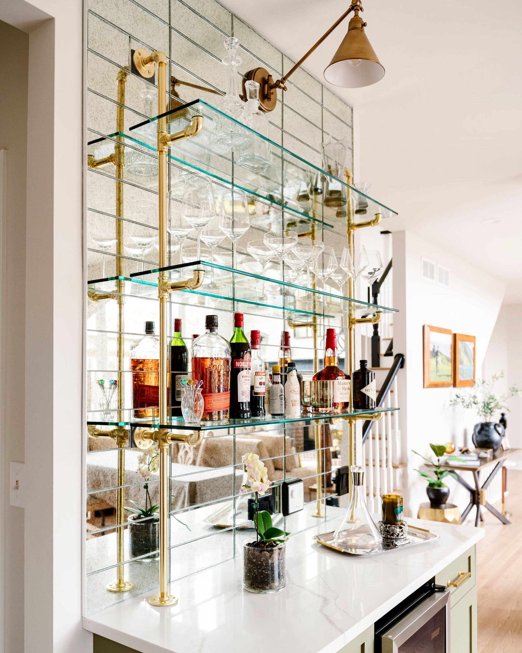 Retro vintage cocktail bar mid century bar home bar gold quilted