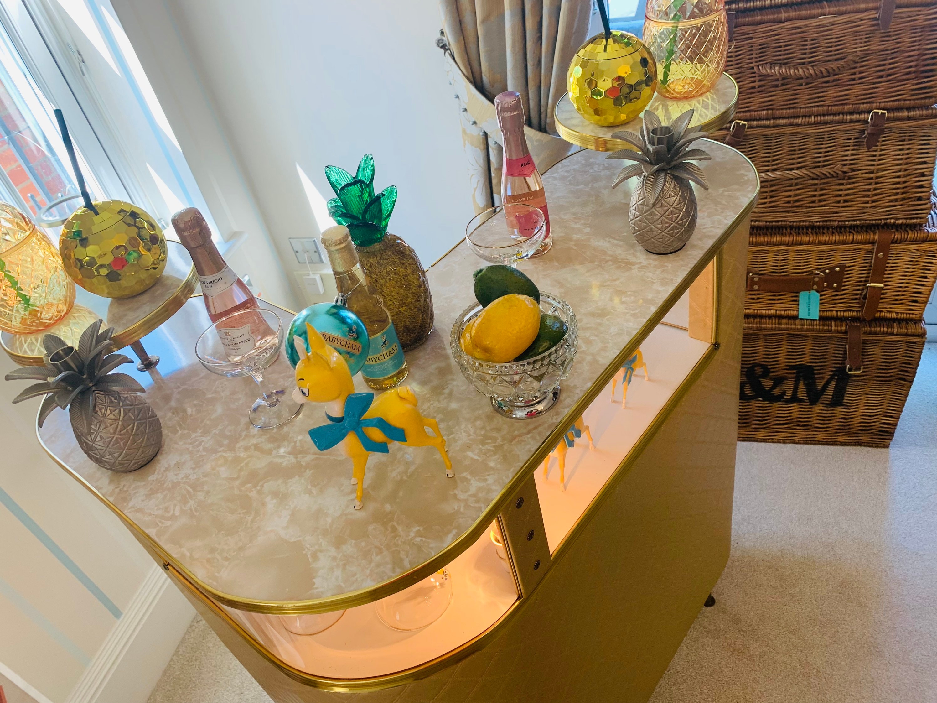 A beautiful mini home cocktail bar from the 1960's beautifully refurbished in gold quilted faux leat...