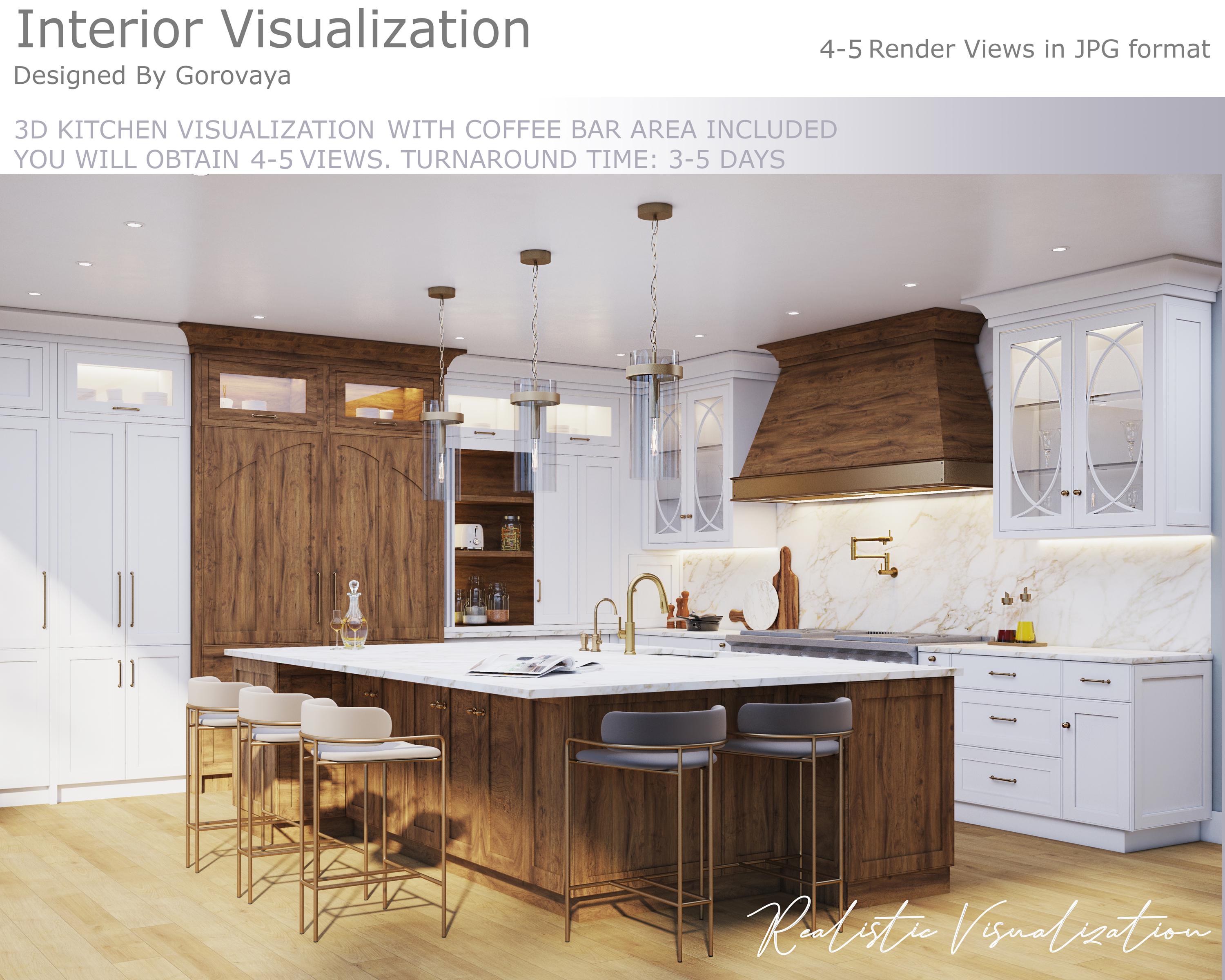 Custom Kitchen Interior with Coffee Bar, 3D Rendering, Kitchen Desi...
