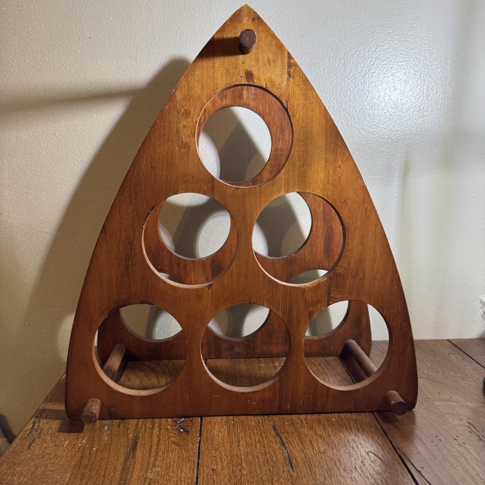 Vintage Wood Wine Rack 6 Bottle Round Wine Storage Countertop MCM B...