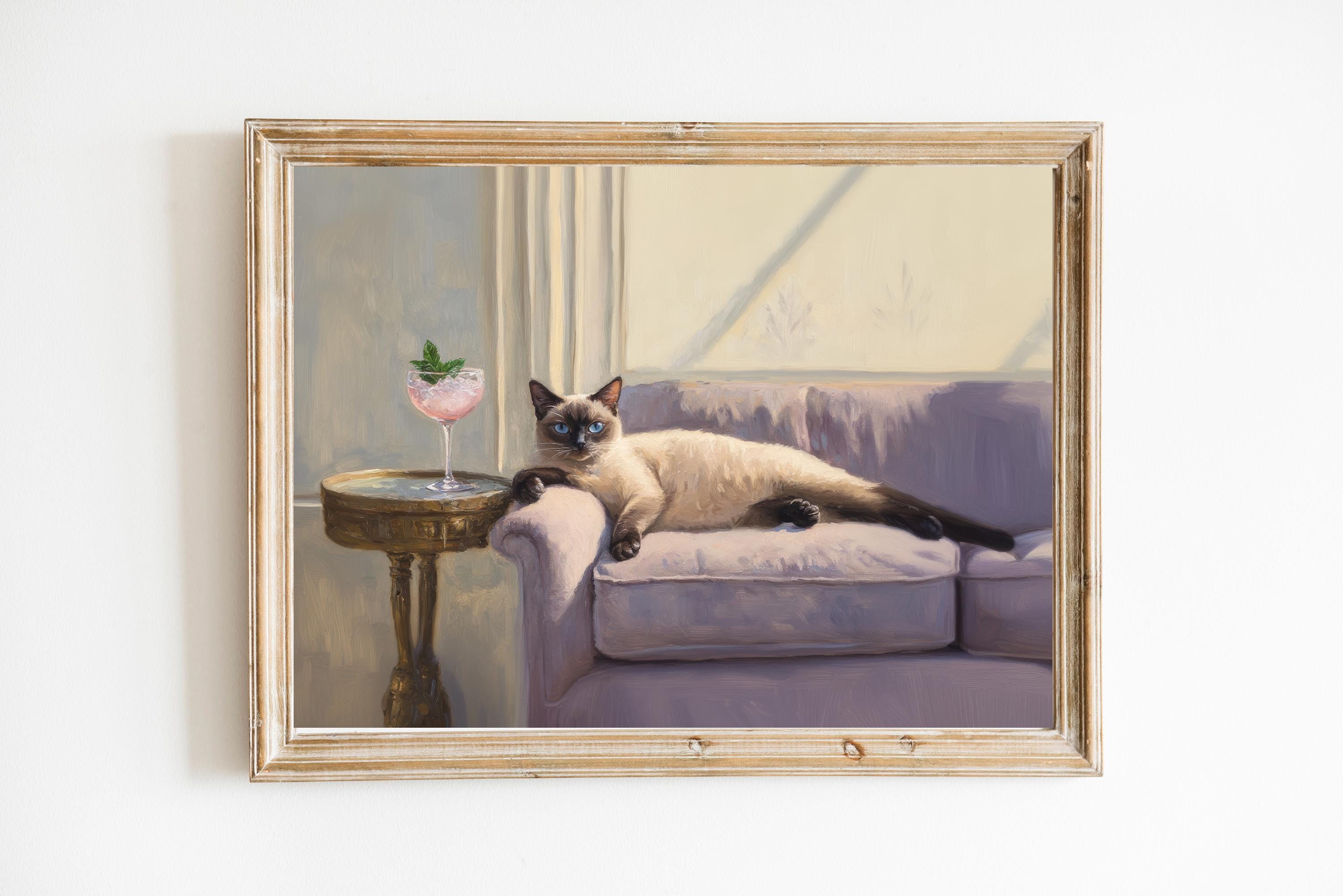 Siamese Cat with Pink Mojito Art Print | Cute Quirky Whimsical | Co...