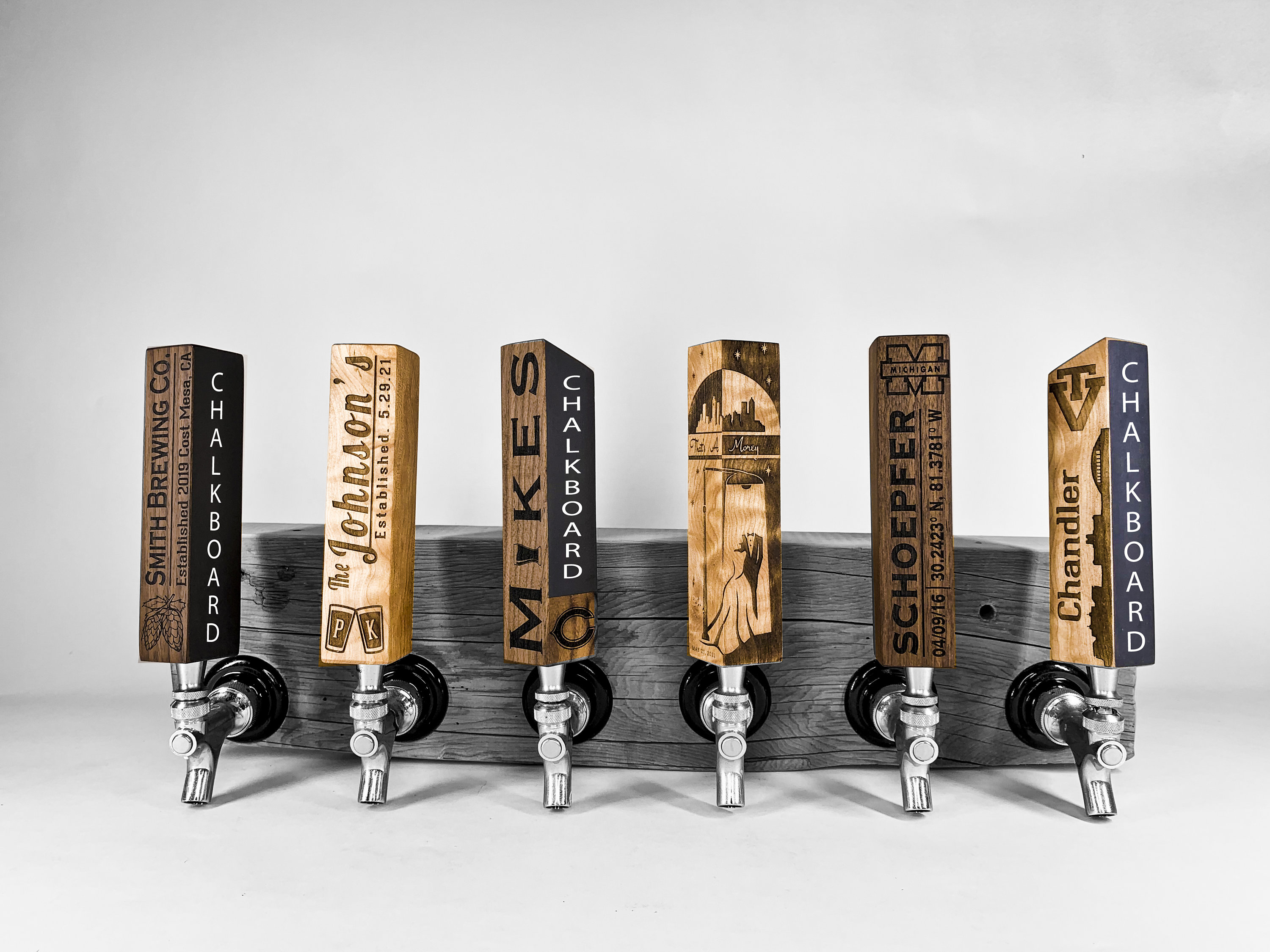 Two custom urban salvaged, laser etched tap handle with original green or black chalkboard paint. Ma...
