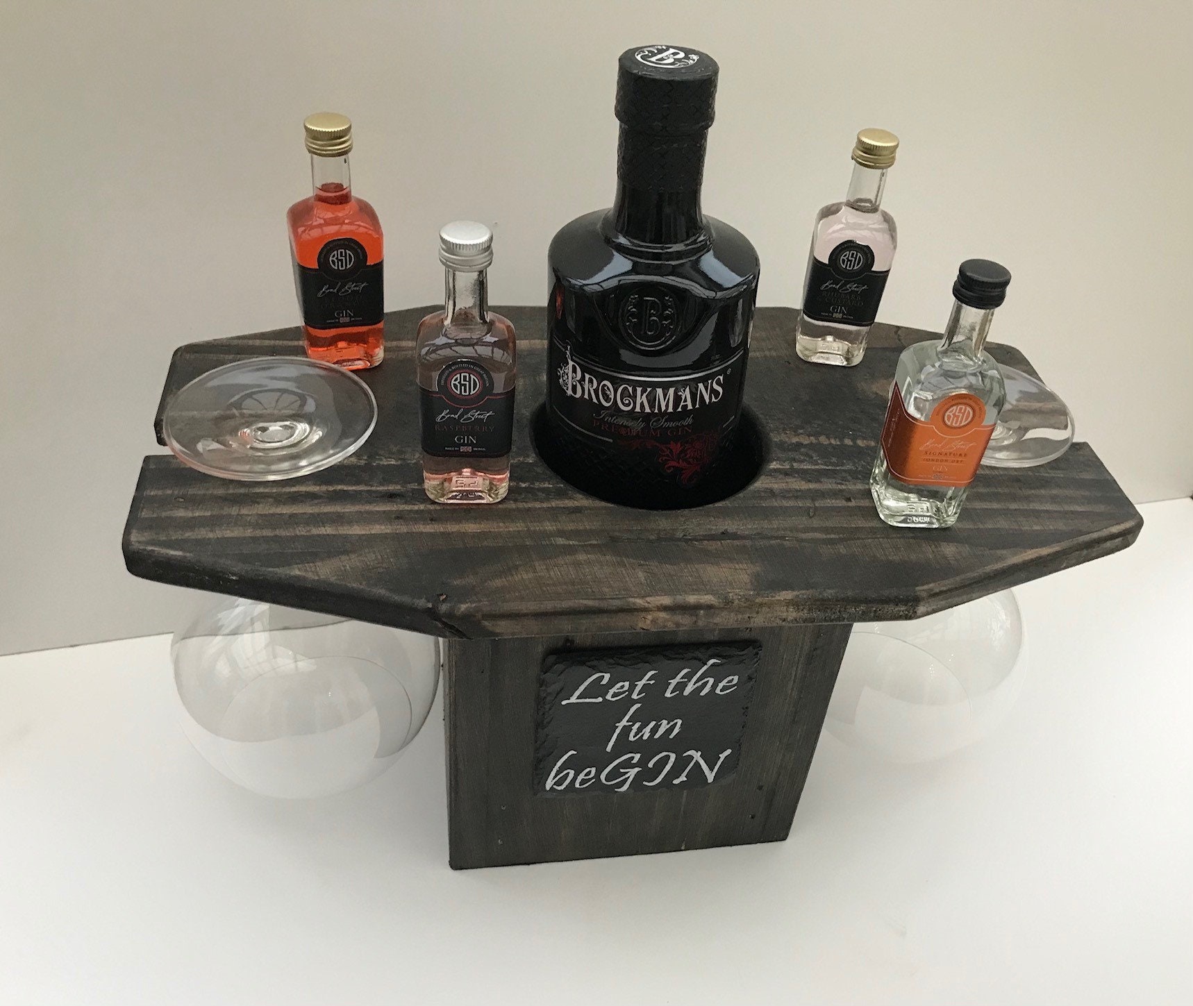 Wooden Gin Bar - hand made from recycled wood Item listed measures approx. 42cm wide x 24cm tall, is...